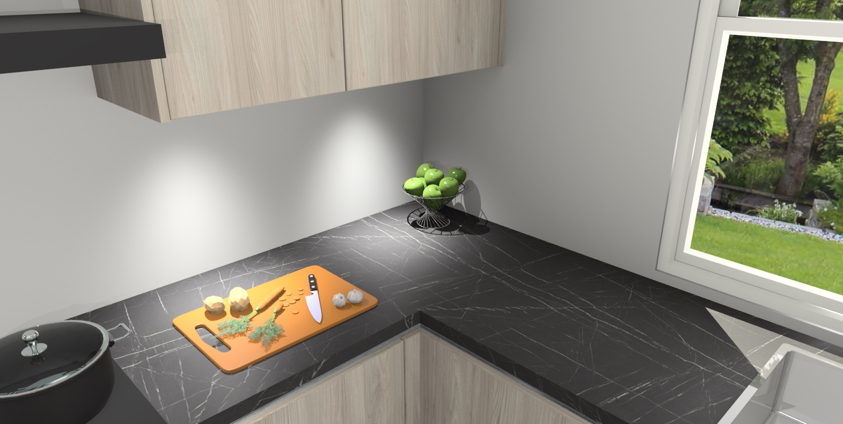 - Bij een hoekwerkblad zijn de hoeken in gevreesd en op maat gemaakt