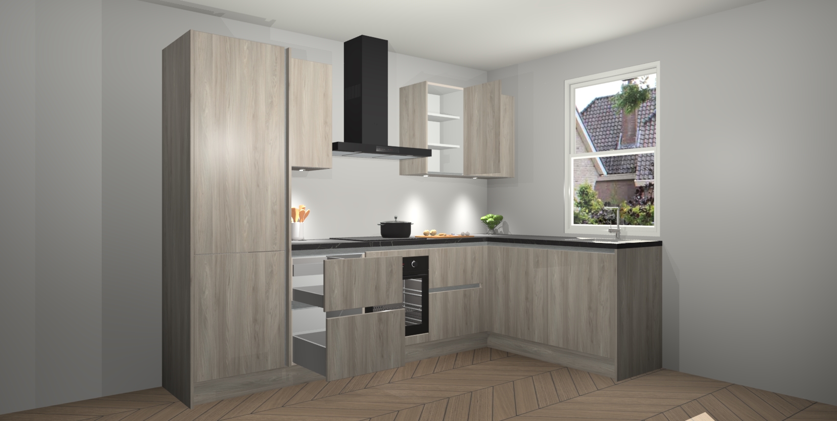 Inclusief plinten, stelpoten en werkblad