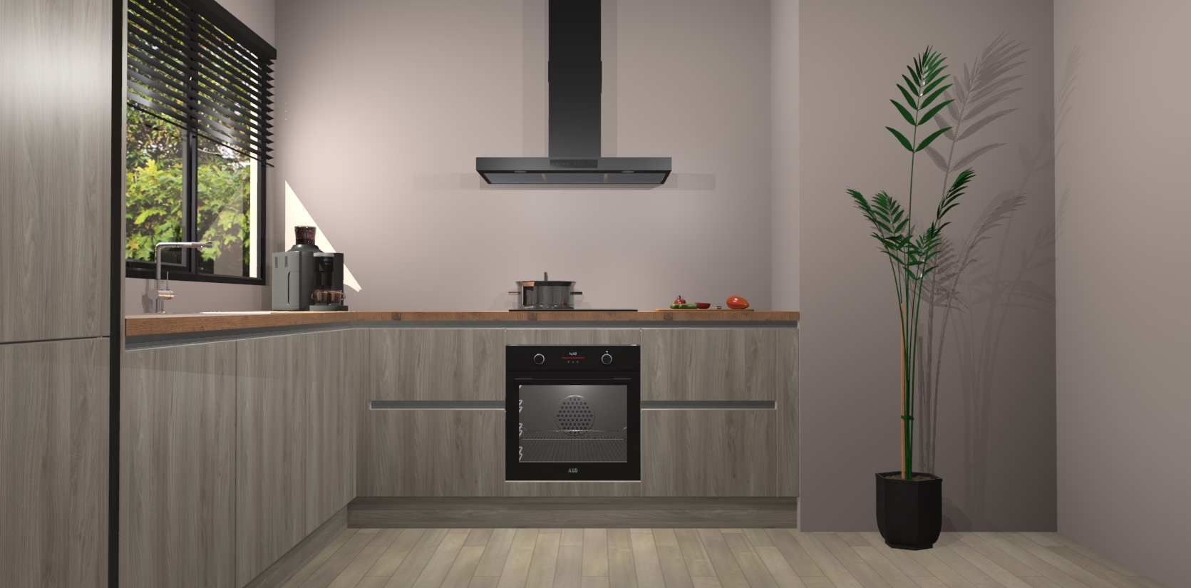 Met een modern, tijdloos design en ruime opslagruimte, zult u zich in no-time thuis voelen in uw nieuwe keuken. Uw leven wordt eenvoudiger met de soft-close deuren die voor het ultieme stille comfort zorgen - geen geluid dat u stoort terwijl u kookt. Ook is de keuken voorzien van 5 ingebouwde apparaten: een oven, inductie kookplaat, afzuigkap, vaatwasser en koelkast. Deze kunnen gemakkelijk na bestelling worden bijgewerkt naar AEG - waardoor uw luxe ervaring compleet is.
