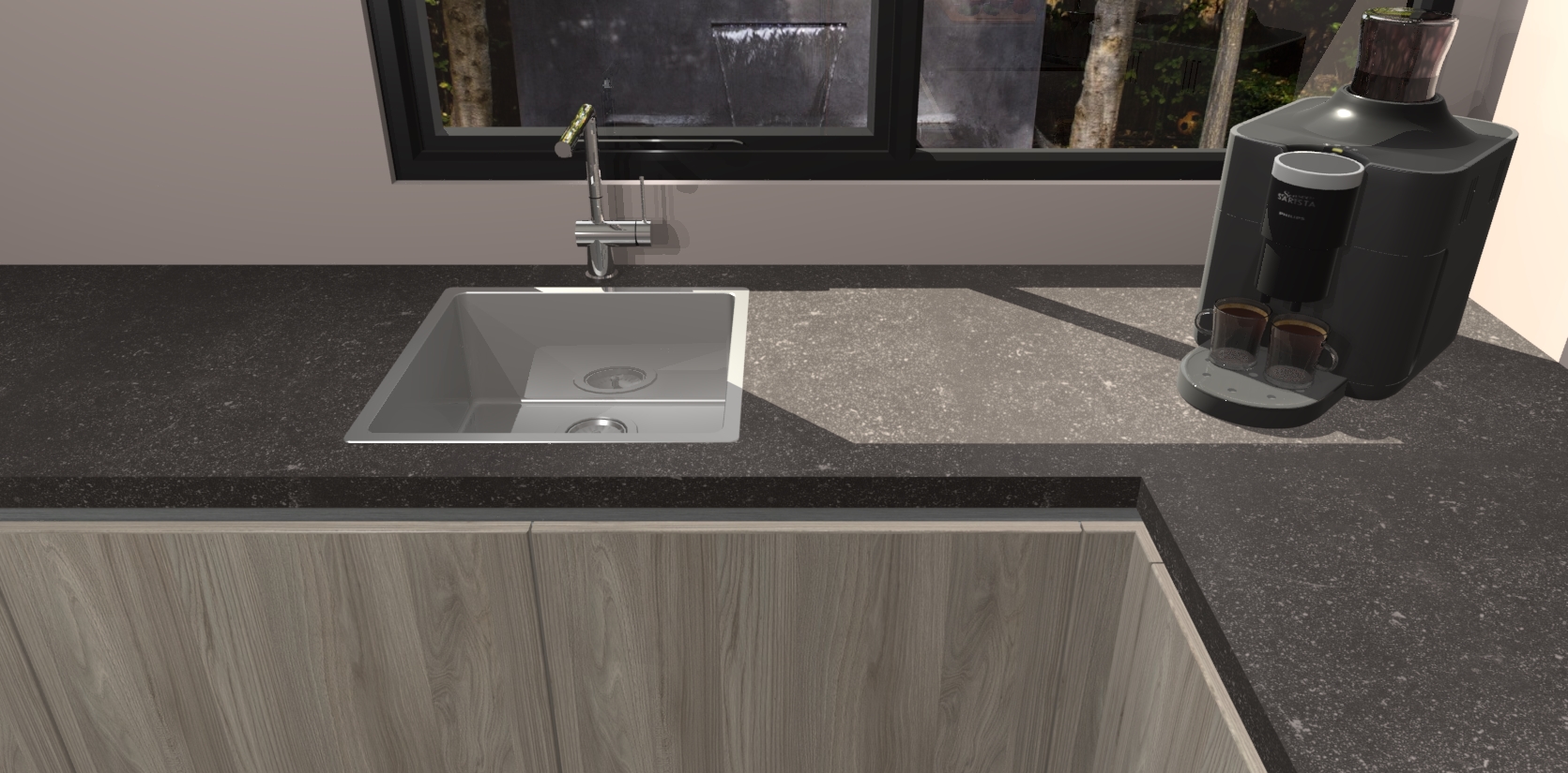 • Bij een hoekwerkblad zijn de hoeken in gevreesd en op maat gemaakt