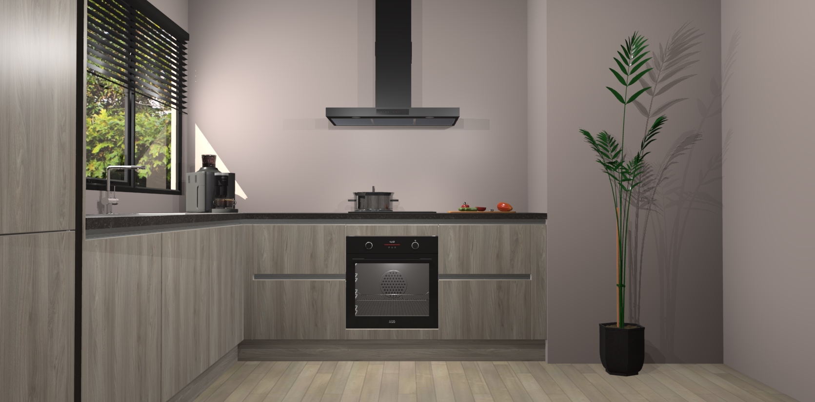 Met een modern, tijdloos design en ruime opslagruimte, zult u zich in no-time thuis voelen in uw nieuwe keuken. Uw leven wordt eenvoudiger met de soft-close deuren die voor het ultieme stille comfort zorgen - geen geluid dat u stoort terwijl u kookt. Ook is de keuken voorzien van 5 ingebouwde apparaten: een oven, inductie kookplaat, afzuigkap, vaatwasser en koelkast. Deze kunnen gemakkelijk na bestelling worden bijgewerkt naar AEG - waardoor uw luxe ervaring compleet is.