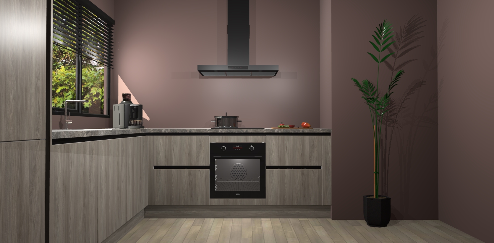 Met een modern, tijdloos design en ruime opslagruimte, zult u zich in no-time thuis voelen in uw nieuwe keuken. Uw leven wordt eenvoudiger met de soft-close deuren die voor het ultieme stille comfort zorgen - geen geluid dat u stoort terwijl u kookt. Ook is de keuken voorzien van 5 ingebouwde apparaten: een oven, inductie kookplaat, afzuigkap, vaatwasser en koelkast. Deze kunnen gemakkelijk na bestelling worden bijgewerkt naar AEG - waardoor uw luxe ervaring compleet is.