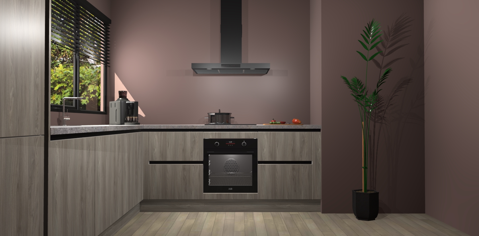 Met een modern, tijdloos design en ruime opslagruimte, zult u zich in no-time thuis voelen in uw nieuwe keuken. Uw leven wordt eenvoudiger met de soft-close deuren die voor het ultieme stille comfort zorgen - geen geluid dat u stoort terwijl u kookt. Ook is de keuken voorzien van 5 ingebouwde apparaten: een oven, inductie kookplaat, afzuigkap, vaatwasser en koelkast. Deze kunnen gemakkelijk na bestelling worden bijgewerkt naar AEG - waardoor uw luxe ervaring compleet is.