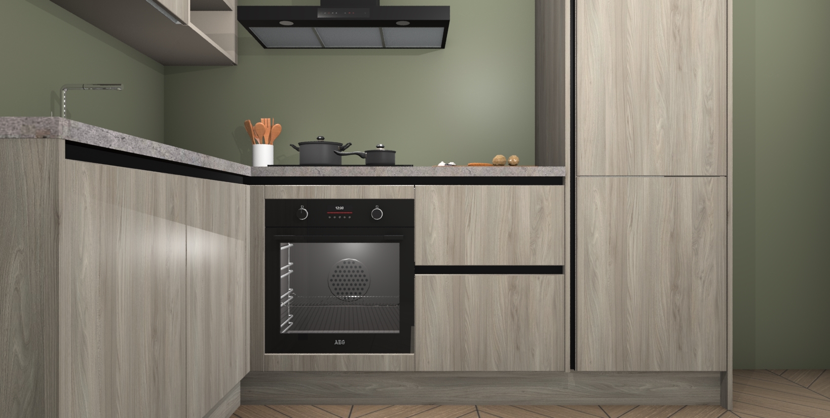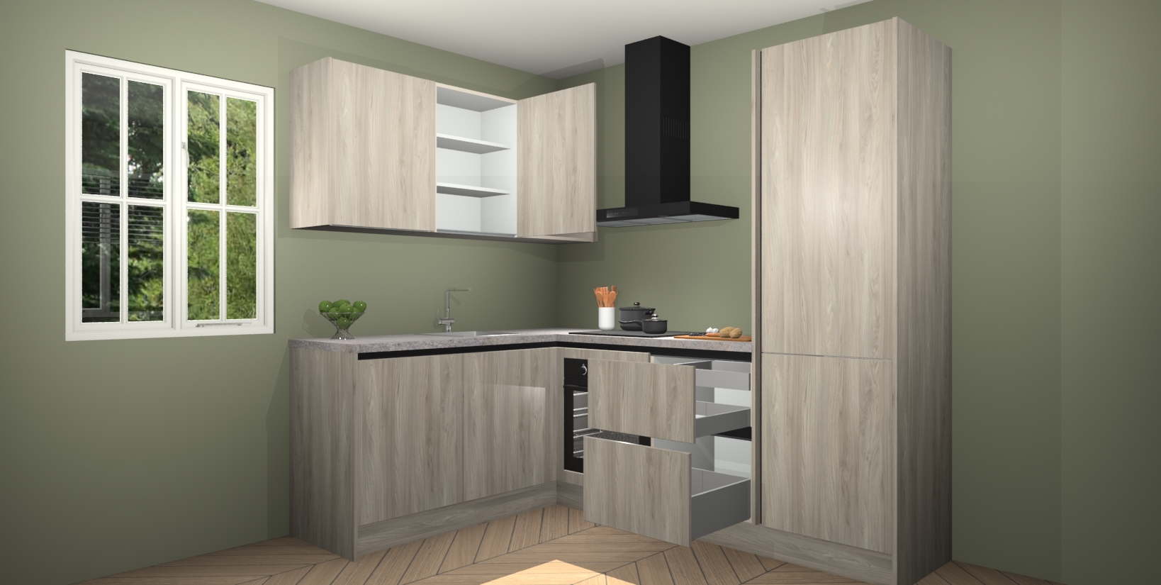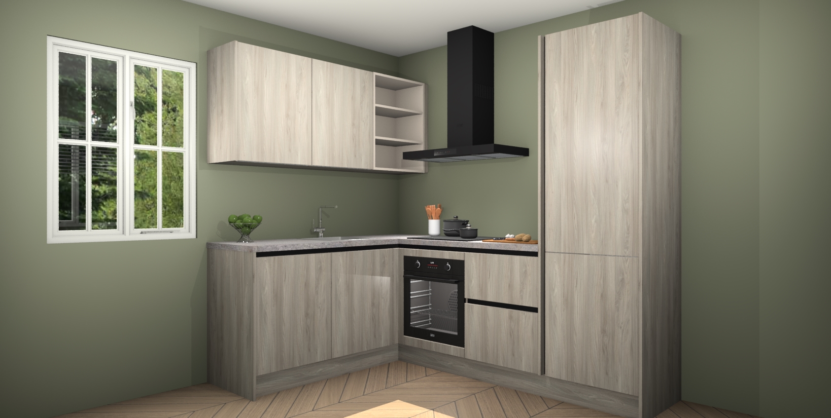 Maak kennis met de Olm greeploze keuken Boekarest, een moderne hoekkeuken waar al uw vrienden en familie jaloers op zullen zijn! Het verbluffende mooie ontwerp past in elk interieur en is een ideale keuze voor wie op zoek is naar een klassieke, maar verfijnde look.