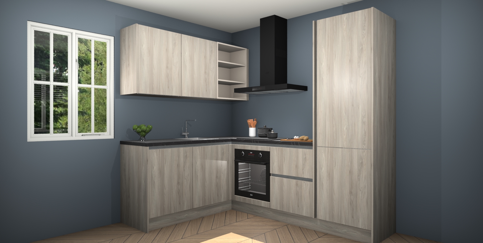 Voor nog meer gemak heeft deze keuken vijf ingebouwde apparaten - oven, inductiekookplaat, afzuigkap, vaatwasser en koelkast. Bovendien hebben alle kasten softclose deuren voor extra comfort bij het sluiten. Dit alles voor een verrassend lage vaste prijs - u vindt nergens anders een betere deal!