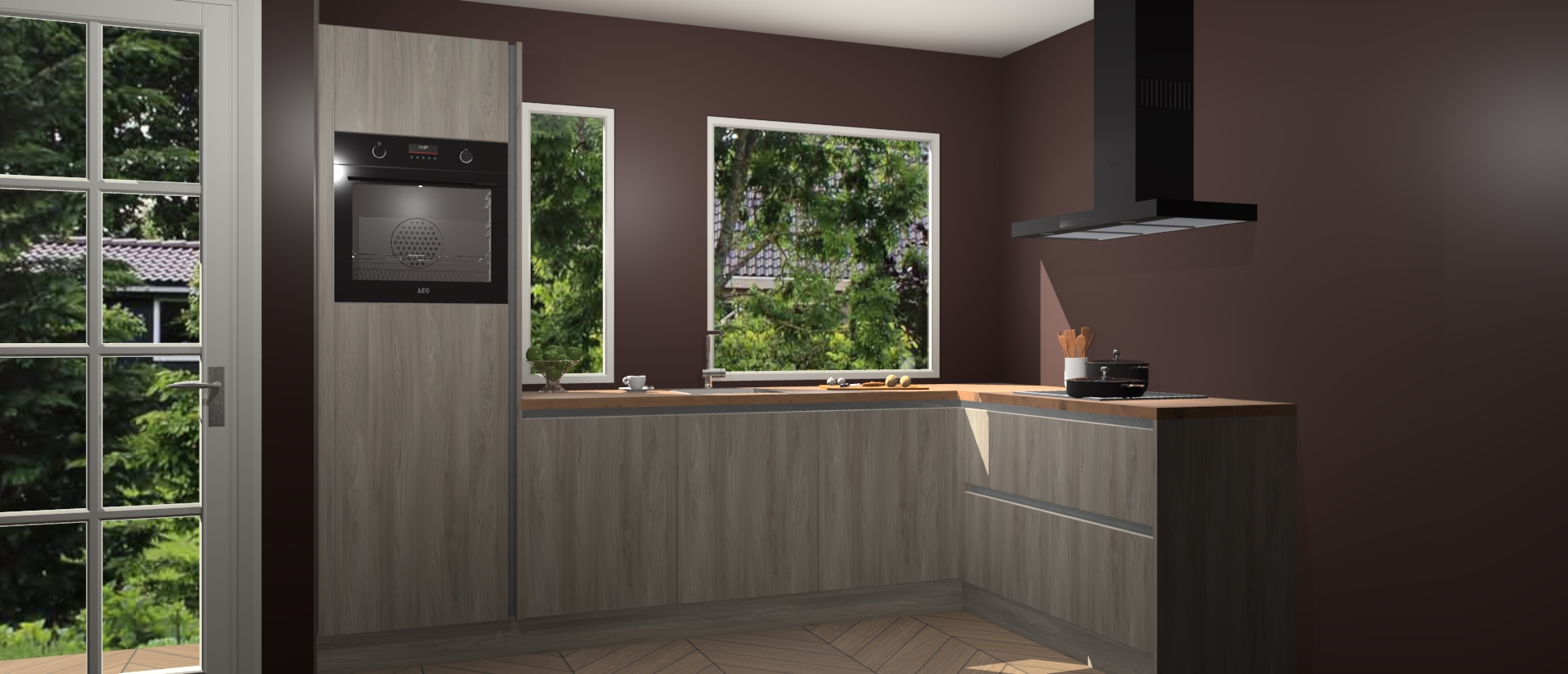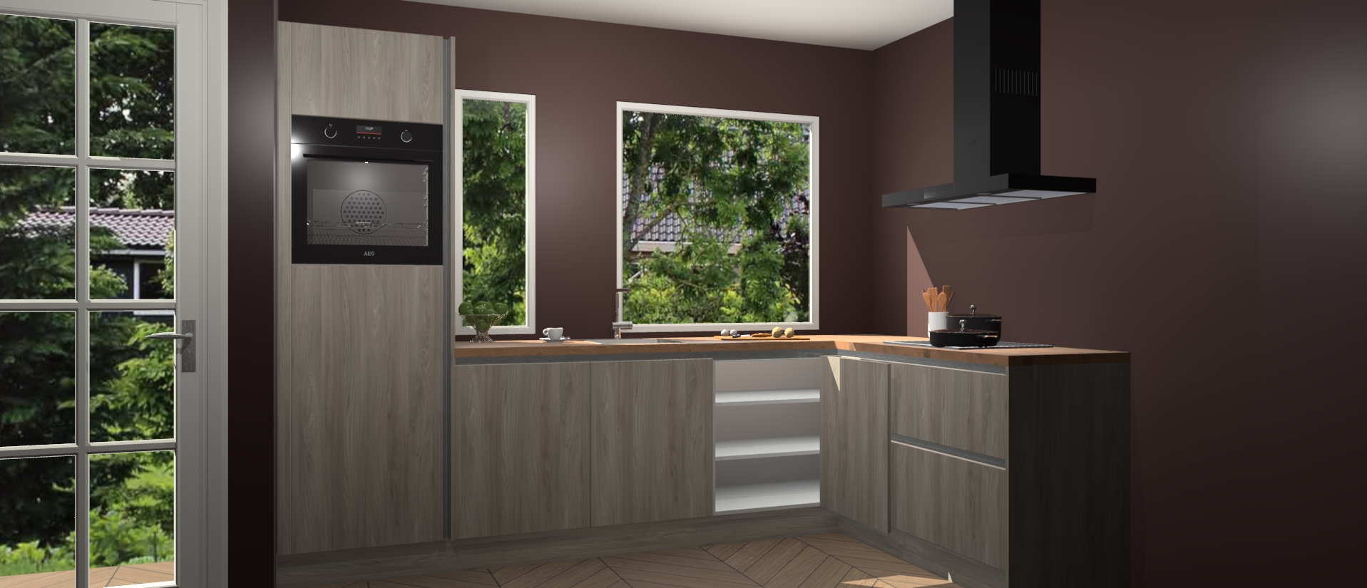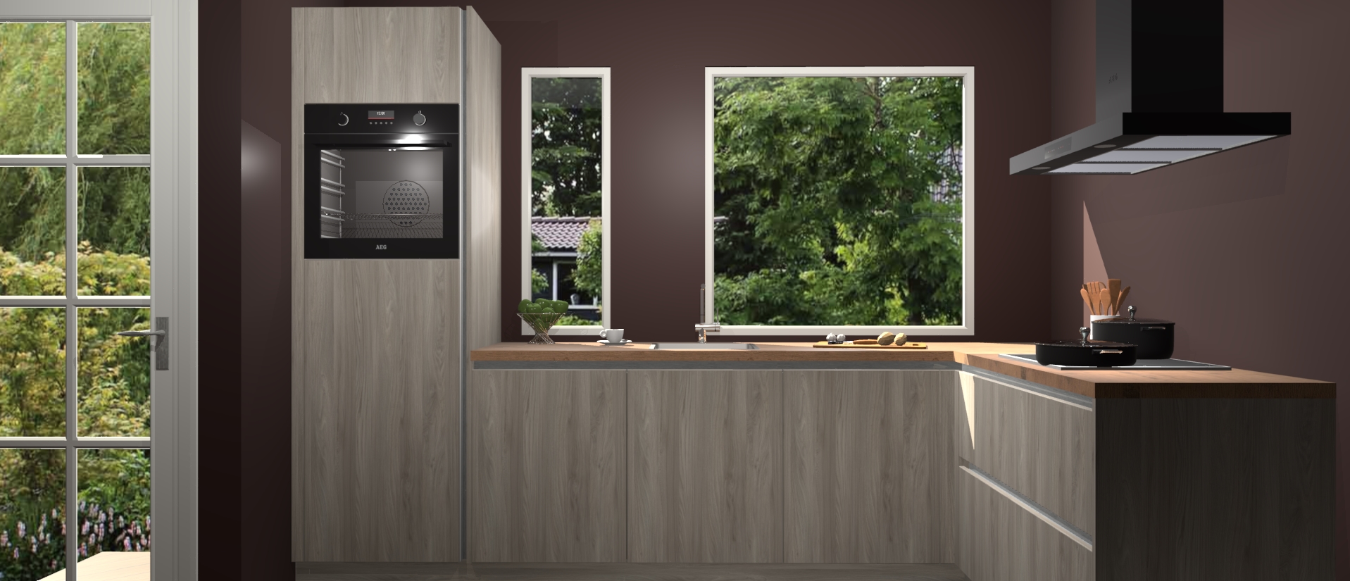 Deze complete keuken wordt geleverd met 5 inbouwapparaten: een oven, inductiekookplaat, afzuigkap, vaatwasser en koelkast. De toestellen kunnen na bestelling ook gemakkelijk worden opgewaardeerd naar AEG. Bovendien is elke deur in deze keuken voorzien van handige softclose technologie voor eenvoudig gebruik! Als een leuke toevoeging zit in deze keuken ook een carrousel, zo hoef je niet meer de hoek in duiken om iets te pakken.
