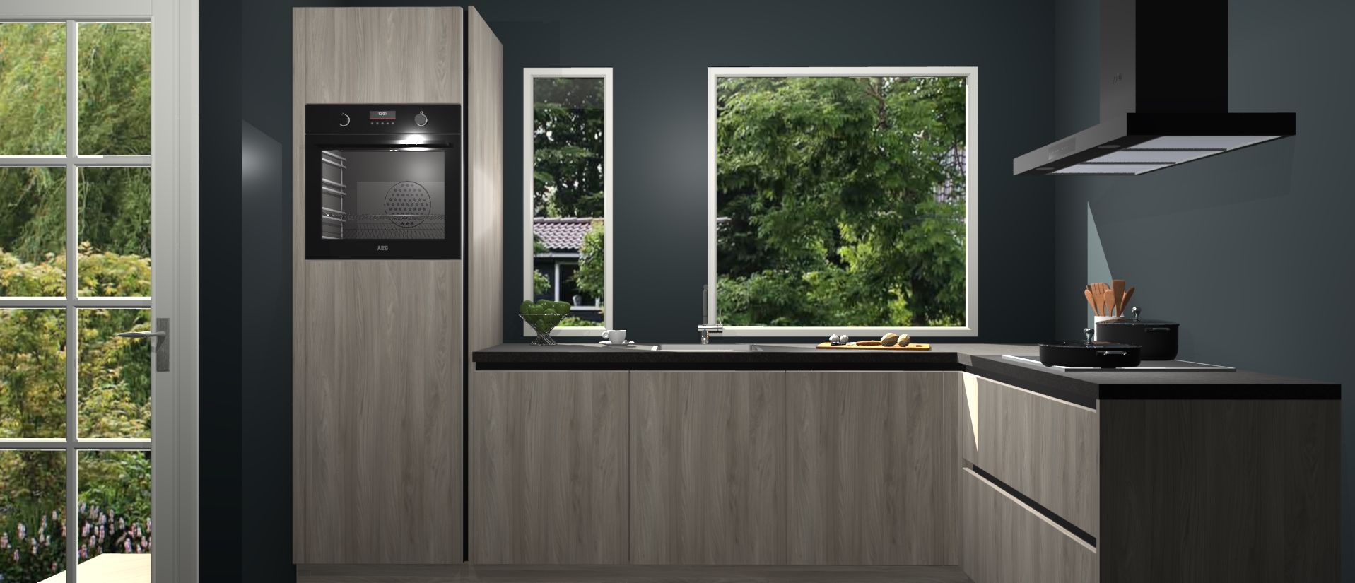 Deze complete keuken wordt geleverd met 5 inbouwapparaten: een oven, inductiekookplaat, afzuigkap, vaatwasser en koelkast. De toestellen kunnen na bestelling ook gemakkelijk worden opgewaardeerd naar AEG. Bovendien is elke deur in deze keuken voorzien van handige softclose technologie voor eenvoudig gebruik! Als een leuke toevoeging zit in deze keuken ook een carrousel, zo hoef je niet meer de hoek in duiken om iets te pakken.