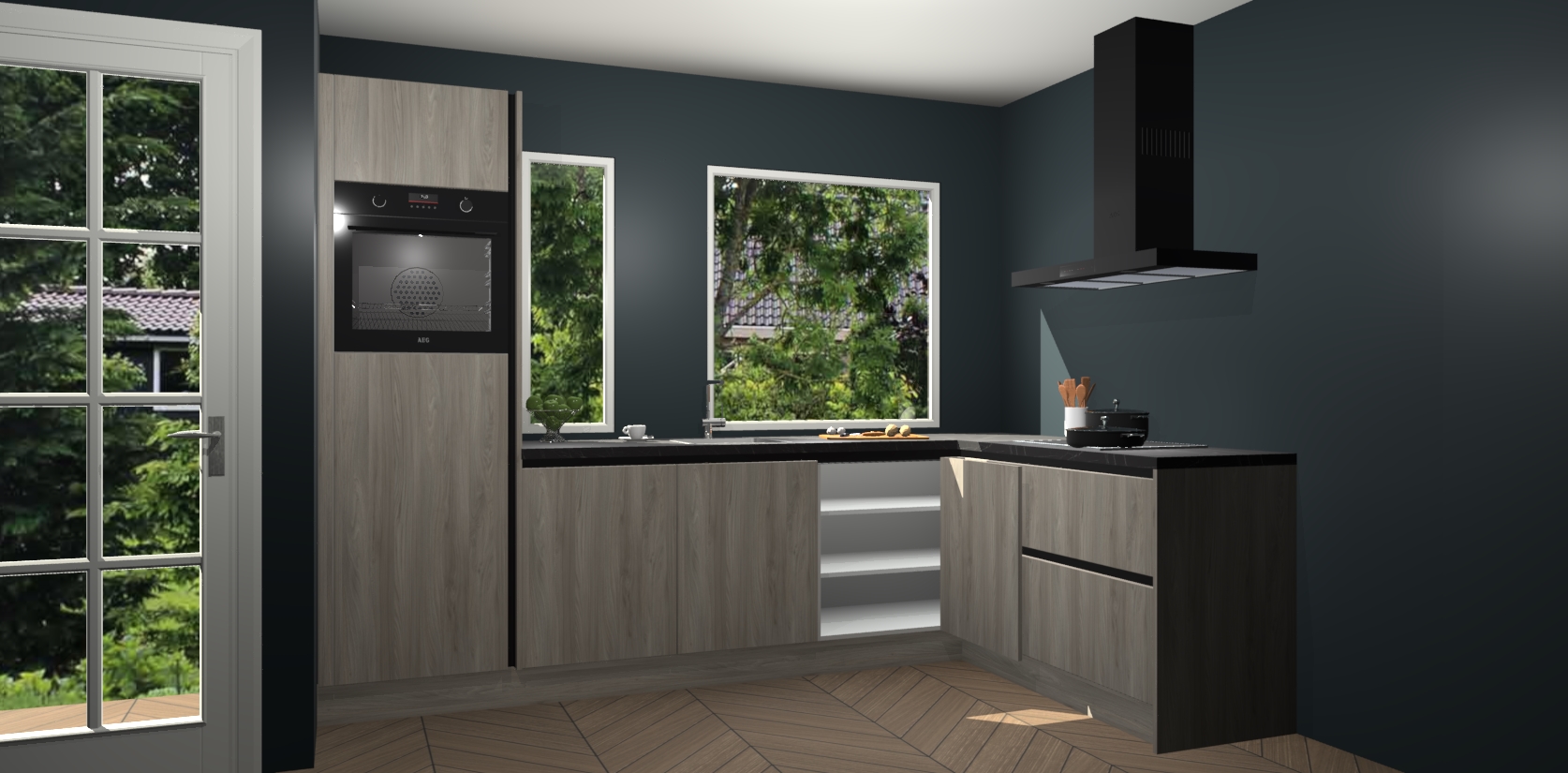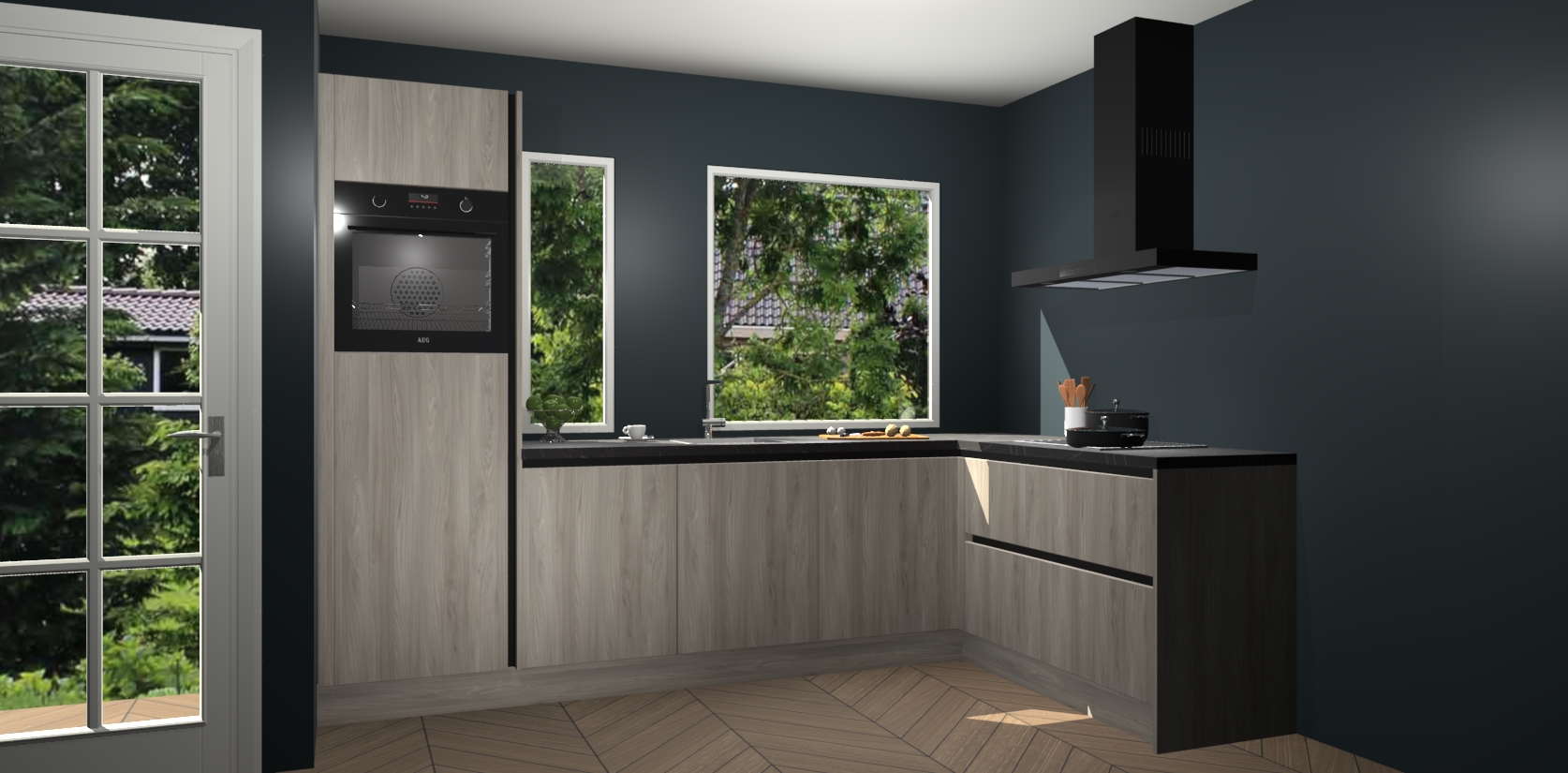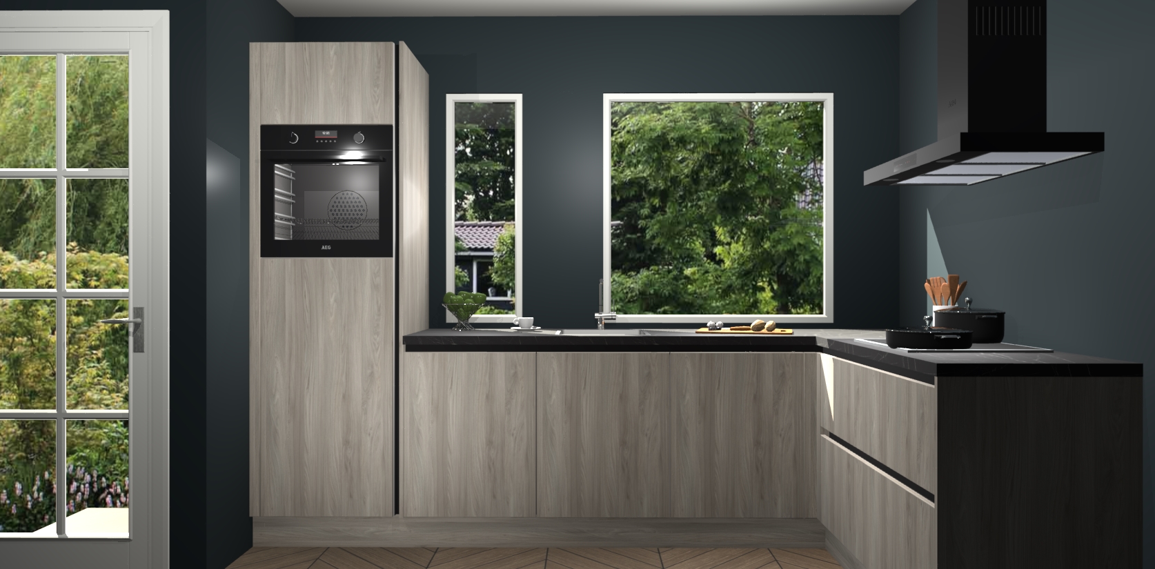Deze complete keuken wordt geleverd met 5 inbouwapparaten: een oven, inductiekookplaat, afzuigkap, vaatwasser en koelkast. De toestellen kunnen na bestelling ook gemakkelijk worden opgewaardeerd naar AEG. Bovendien is elke deur in deze keuken voorzien van handige softclose technologie voor eenvoudig gebruik! Als een leuke toevoeging zit in deze keuken ook een carrousel, zo hoef je niet meer de hoek in duiken om iets te pakken.