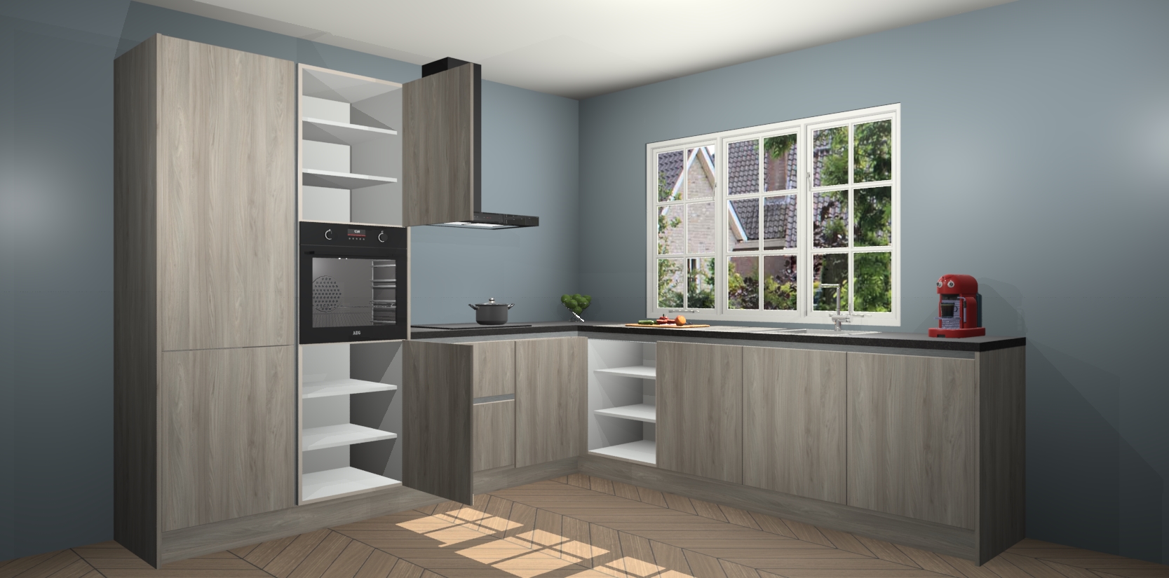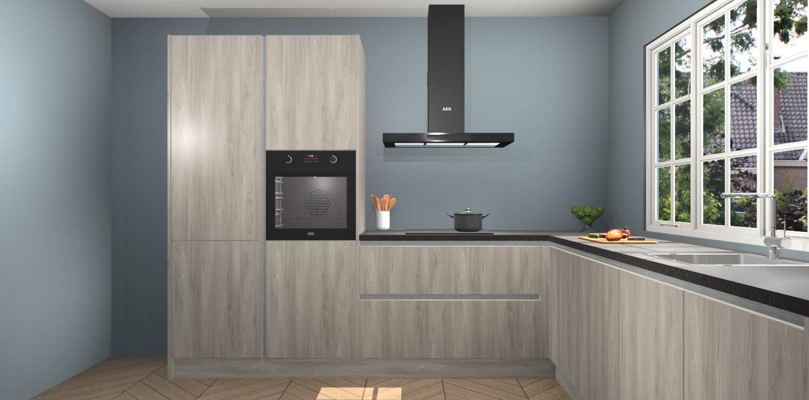 De keuken heeft veel opbergruimte, waardoor u alle ingrediënten gemakkelijk bereikbaar hebt staan. En daarnaast bevat deze volledig uitgeruste keuken ook 5 ingebouwde apparaten: een oven, inductiekookplaat, afzuigkap, vaatwasser en koelkast. Deze zijn heel eenvoudig na bestellen te upgraden naar AEG als u dit wilt. Bovendien zijn de softclose-kastdeuren ideaal; geef ze gewoon even een tikje en ze sluiten automatisch met geruisloze precisie.
