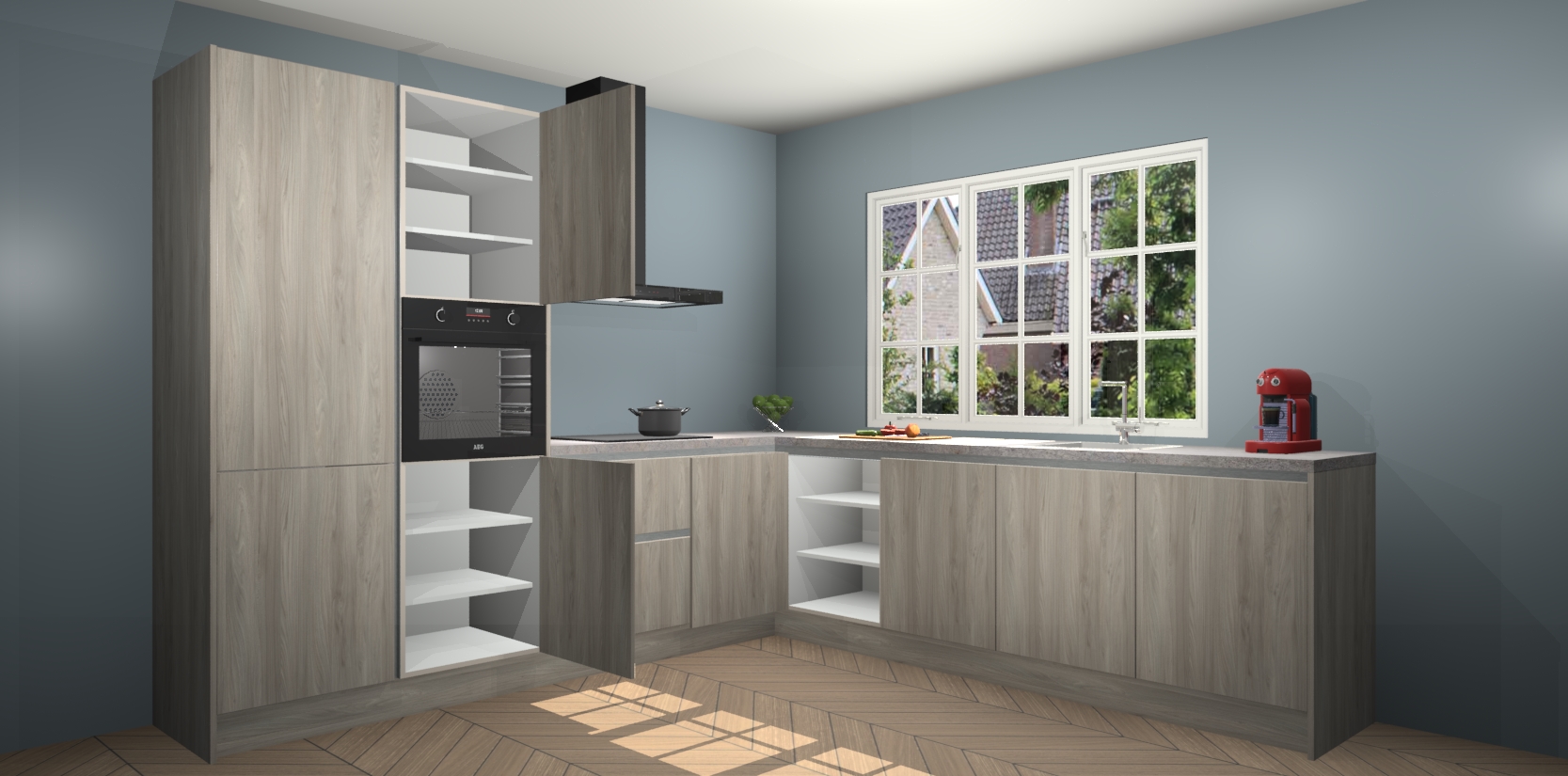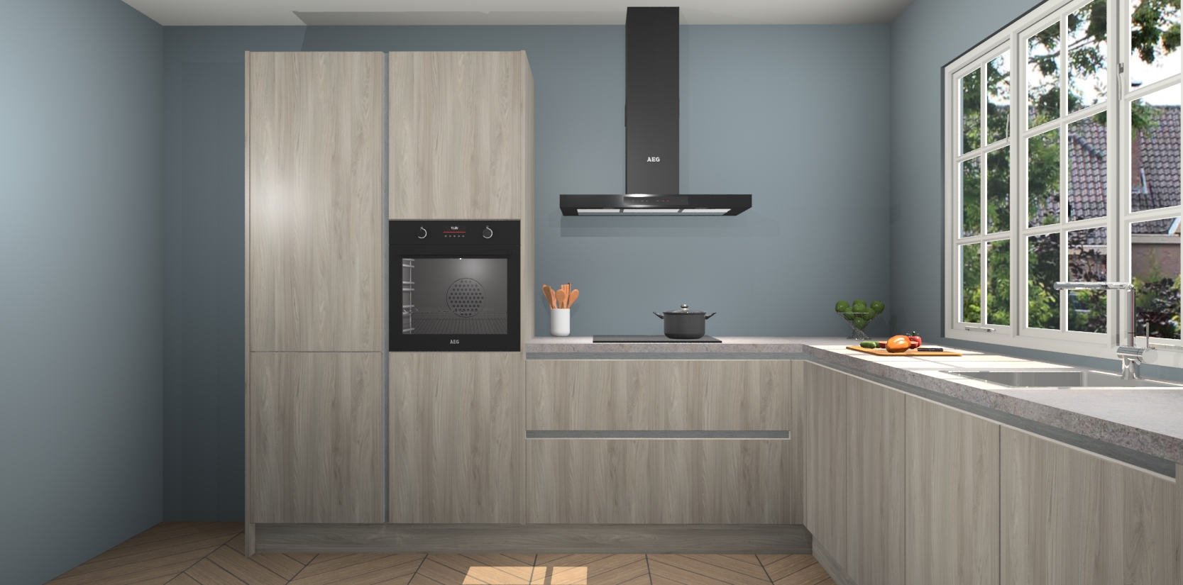 De keuken heeft veel opbergruimte, waardoor u alle ingrediënten gemakkelijk bereikbaar hebt staan. En daarnaast bevat deze volledig uitgeruste keuken ook 5 ingebouwde apparaten: een oven, inductiekookplaat, afzuigkap, vaatwasser en koelkast. Deze zijn heel eenvoudig na bestellen te upgraden naar AEG als u dit wilt. Bovendien zijn de softclose-kastdeuren ideaal; geef ze gewoon even een tikje en ze sluiten automatisch met geruisloze precisie.