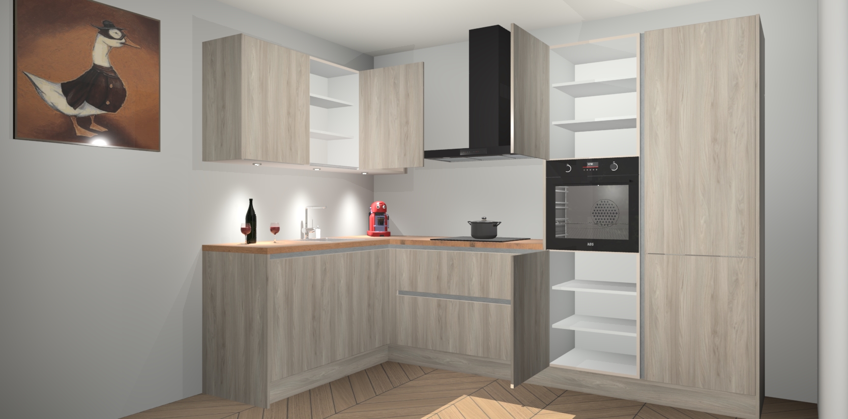 In deze box zijn alle kleuren verzameld van de deuren en werkbladen. Vraag de gratis kleurenbox aan en kijk thuis rustig verder!