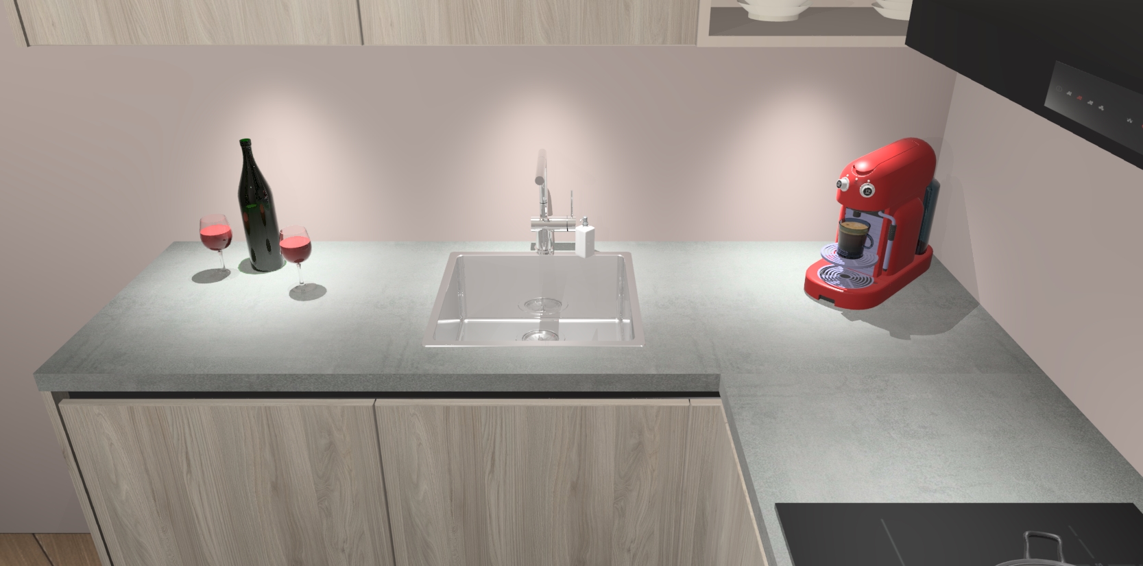 - Bij een hoekwerkblad zijn de hoeken in gevreesd en op maat gemaakt