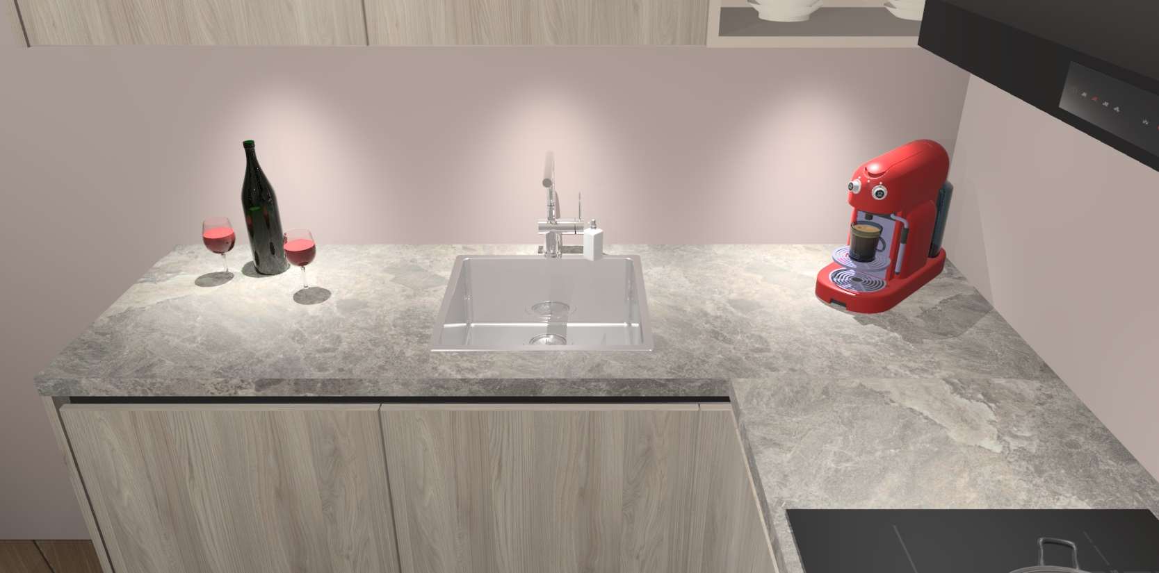 - Bij een hoekwerkblad zijn de hoeken in gevreesd en op maat gemaakt