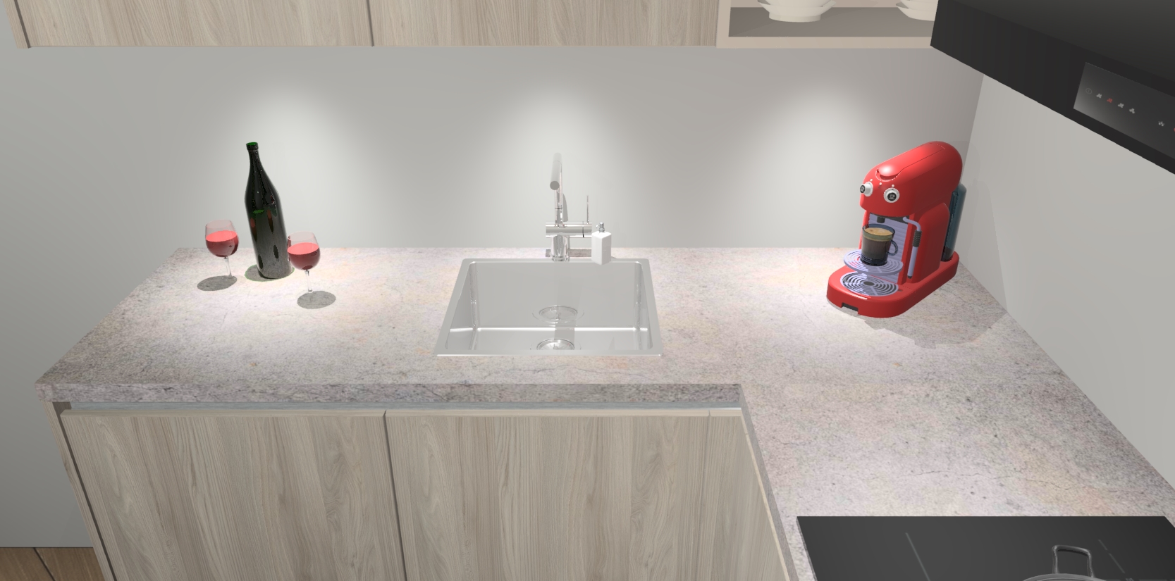 - Bij een hoekwerkblad zijn de hoeken in gevreesd en op maat gemaakt