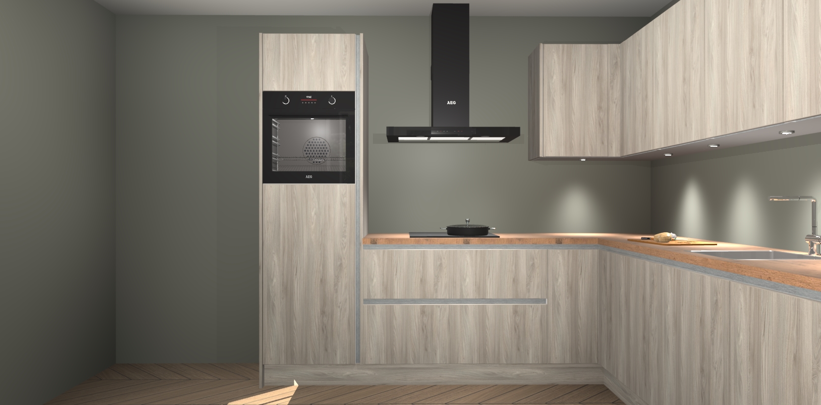 De Olm greeploze keuken Debar is uitgerust met vijf inbouwapparaten die elke kooktaak handig en efficiënt maken. Een oven, inductiekookplaat, afzuigkap, vaatwasser en koelkast zijn standaard, maar kunnen na bestelling eenvoudig worden geupgrade naar AEG. Profiteer vervolgens van de softclose deuren voor snelle toegang en geruisloze toegang.