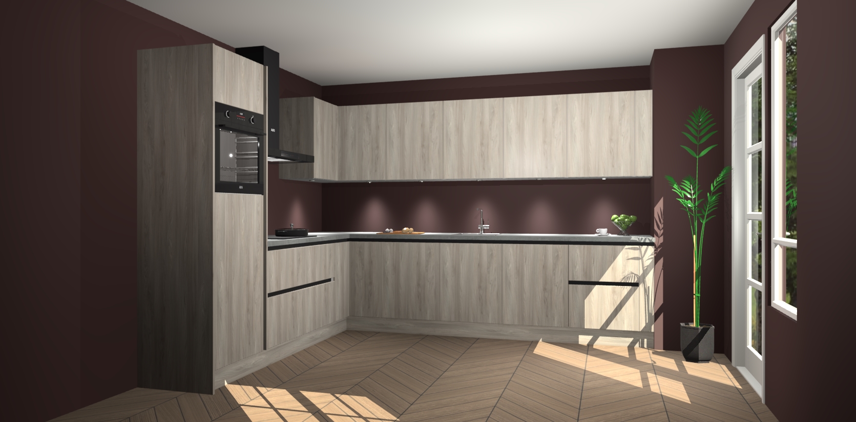 Als u op zoek bent naar de perfecte keuken om uw huis mee op te fleuren, zoek dan niet verder dan de Olm greeploze keuken Debar. Deze prachtige hoekkeuken straalt warmte en luxe uit met een modern maar geraffineerd design. Maak u nooit meer zorgen of u wel genoeg opbergruimte heeft; dit meubel biedt voldoende opbergruimte om al uw keukenbenodigdheden binnen handbereik te houden.