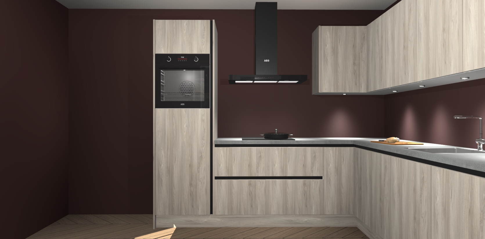 De Olm greeploze keuken Debar is uitgerust met vijf inbouwapparaten die elke kooktaak handig en efficiënt maken. Een oven, inductiekookplaat, afzuigkap, vaatwasser en koelkast zijn standaard, maar kunnen na bestelling eenvoudig worden geupgrade naar AEG. Profiteer vervolgens van de softclose deuren voor snelle toegang en geruisloze toegang.