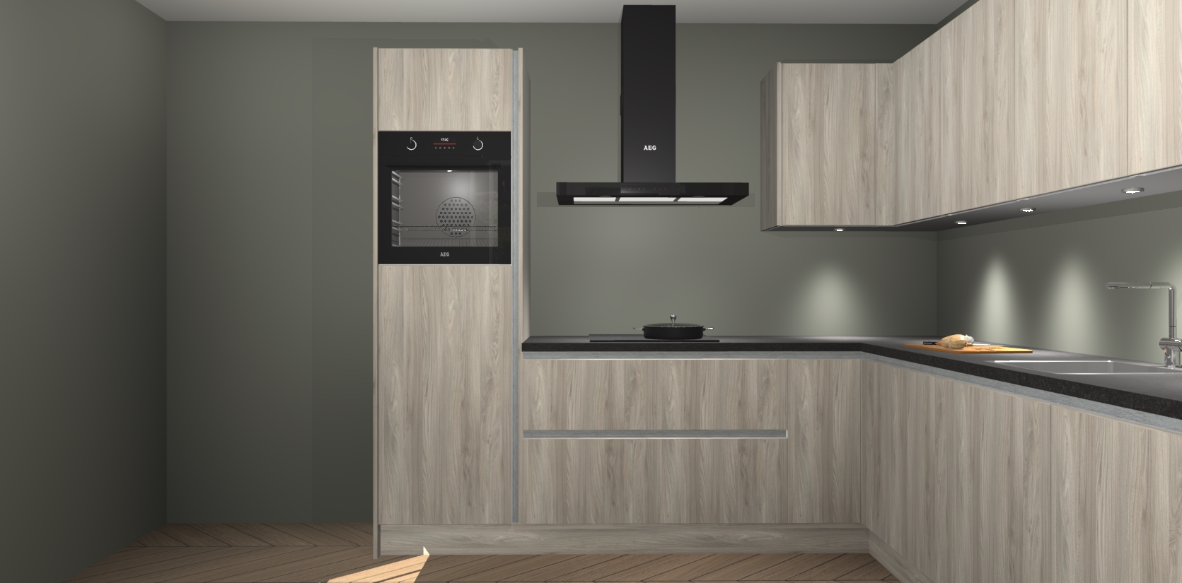 De Olm greeploze keuken Debar is uitgerust met vijf inbouwapparaten die elke kooktaak handig en efficiënt maken. Een oven, inductiekookplaat, afzuigkap, vaatwasser en koelkast zijn standaard, maar kunnen na bestelling eenvoudig worden geupgrade naar AEG. Profiteer vervolgens van de softclose deuren voor snelle toegang en geruisloze toegang.