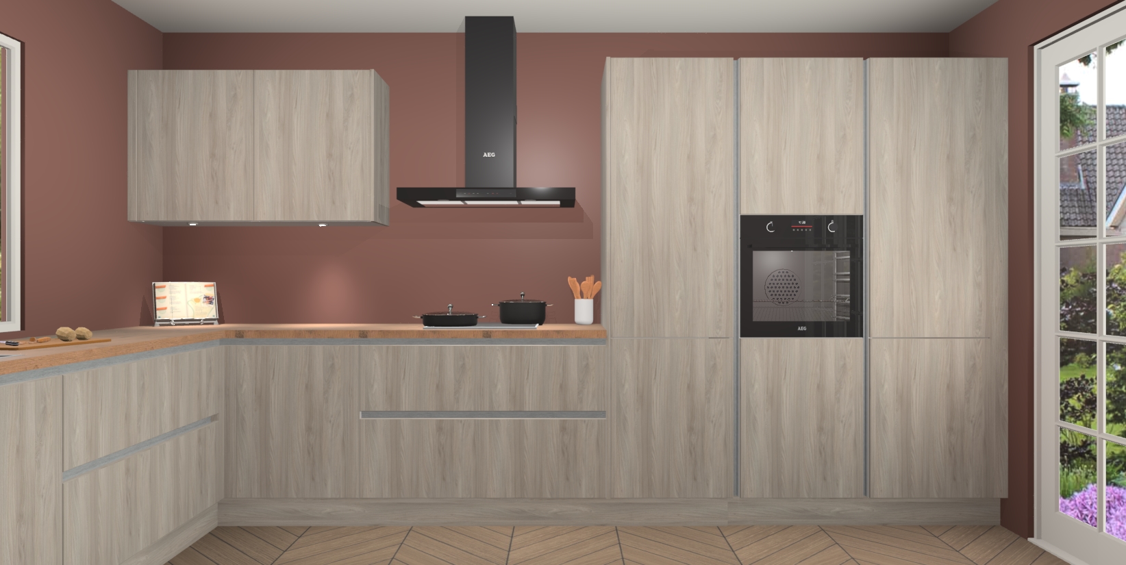 Kom dichtbij de perfecte keuken van uw dromen met de Olm greeploze keuken Debrecen. Met een prachtige houtlook en eigentijds ontwerp, straalt deze keuken warmte en sfeer uit. Of u nu liefhebber bent van traditionele of moderne stijlen, er is genoeg ruimte om aan al uw behoeften te voldoen.