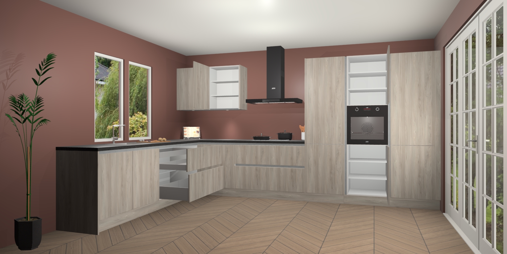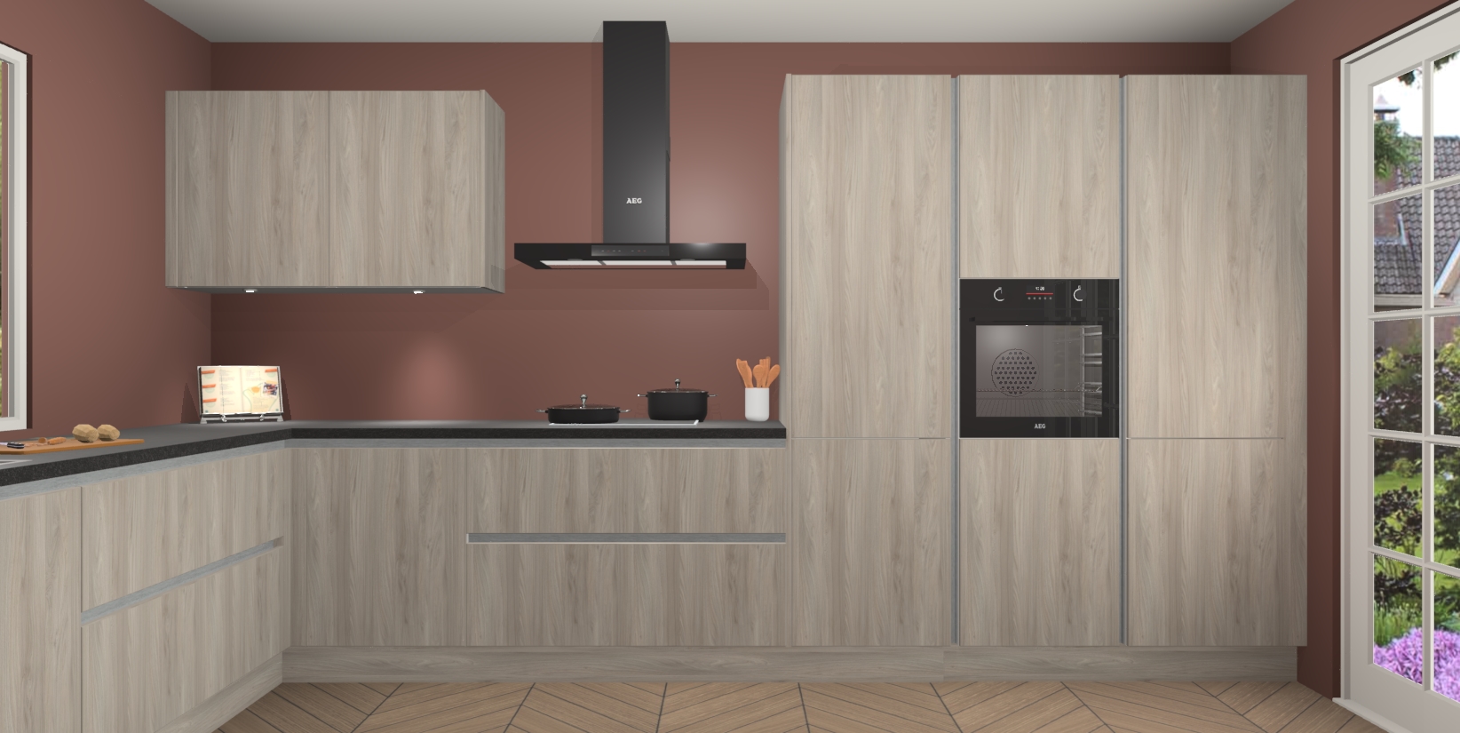 Kom dichtbij de perfecte keuken van uw dromen met de Olm greeploze keuken Debrecen. Met een prachtige houtlook en eigentijds ontwerp, straalt deze keuken warmte en sfeer uit. Of u nu liefhebber bent van traditionele of moderne stijlen, er is genoeg ruimte om aan al uw behoeften te voldoen.