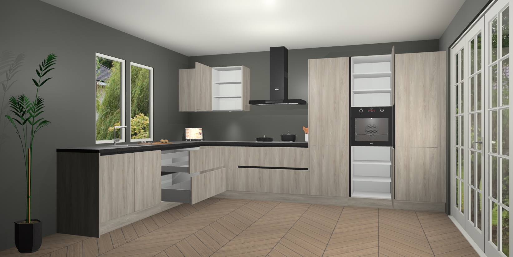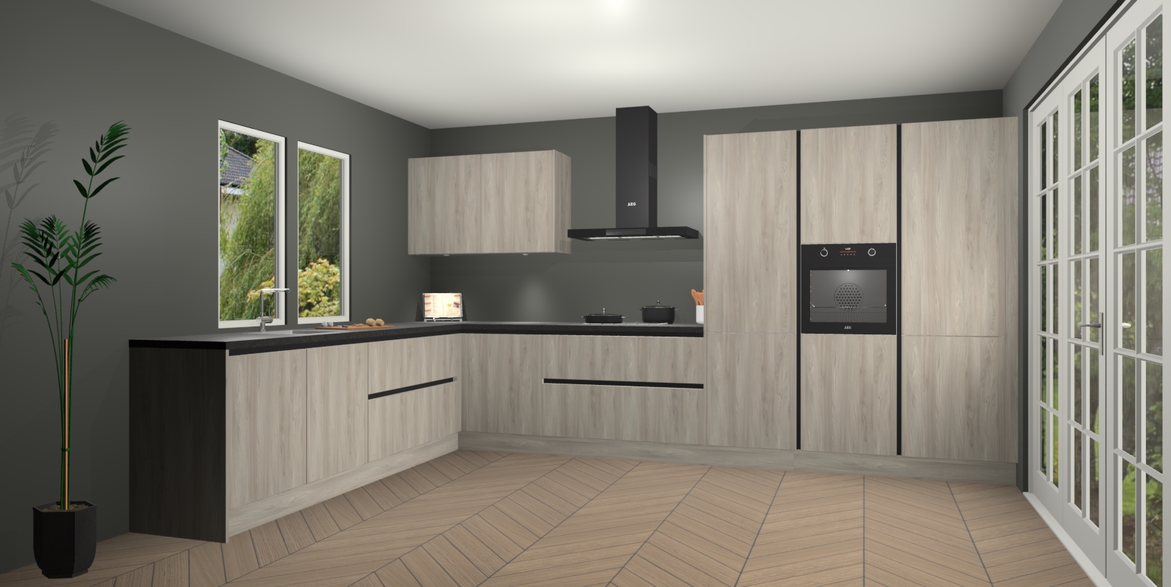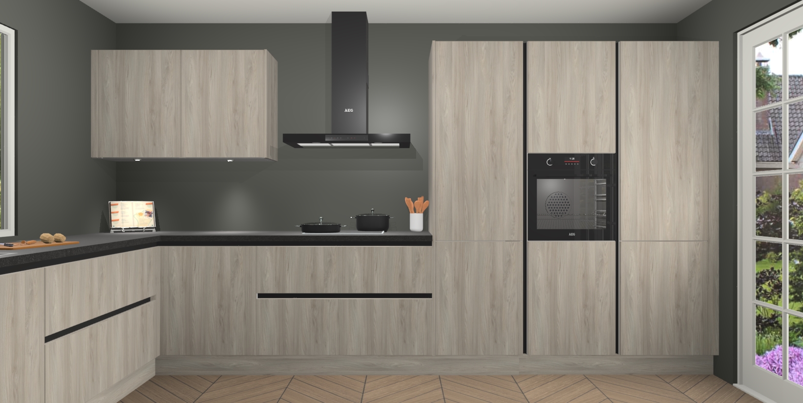 Kom dichtbij de perfecte keuken van uw dromen met de Olm greeploze keuken Debrecen. Met een prachtige houtlook en eigentijds ontwerp, straalt deze keuken warmte en sfeer uit. Of u nu liefhebber bent van traditionele of moderne stijlen, er is genoeg ruimte om aan al uw behoeften te voldoen.