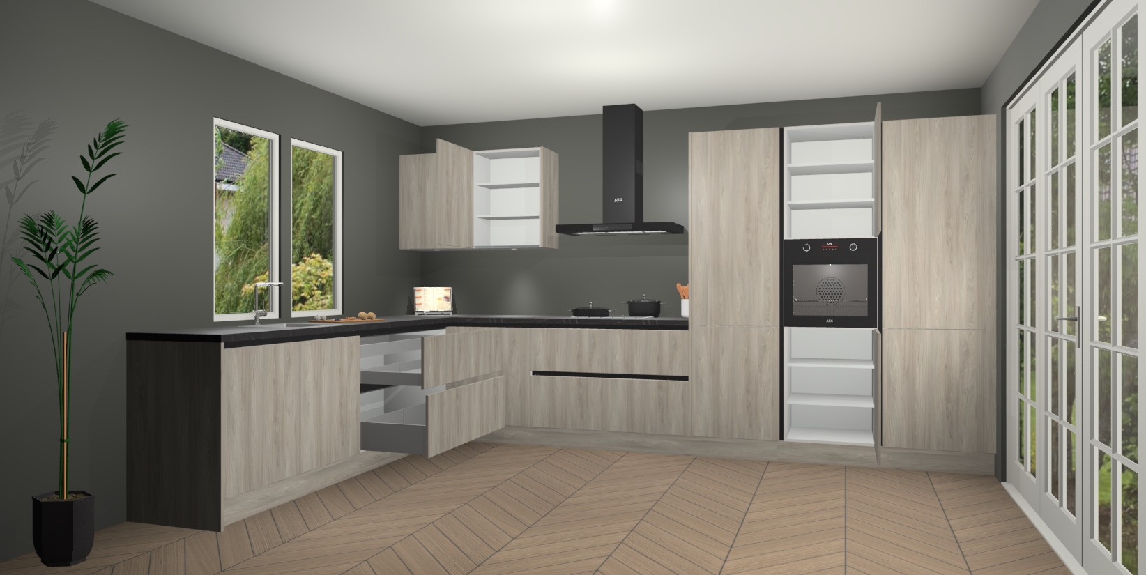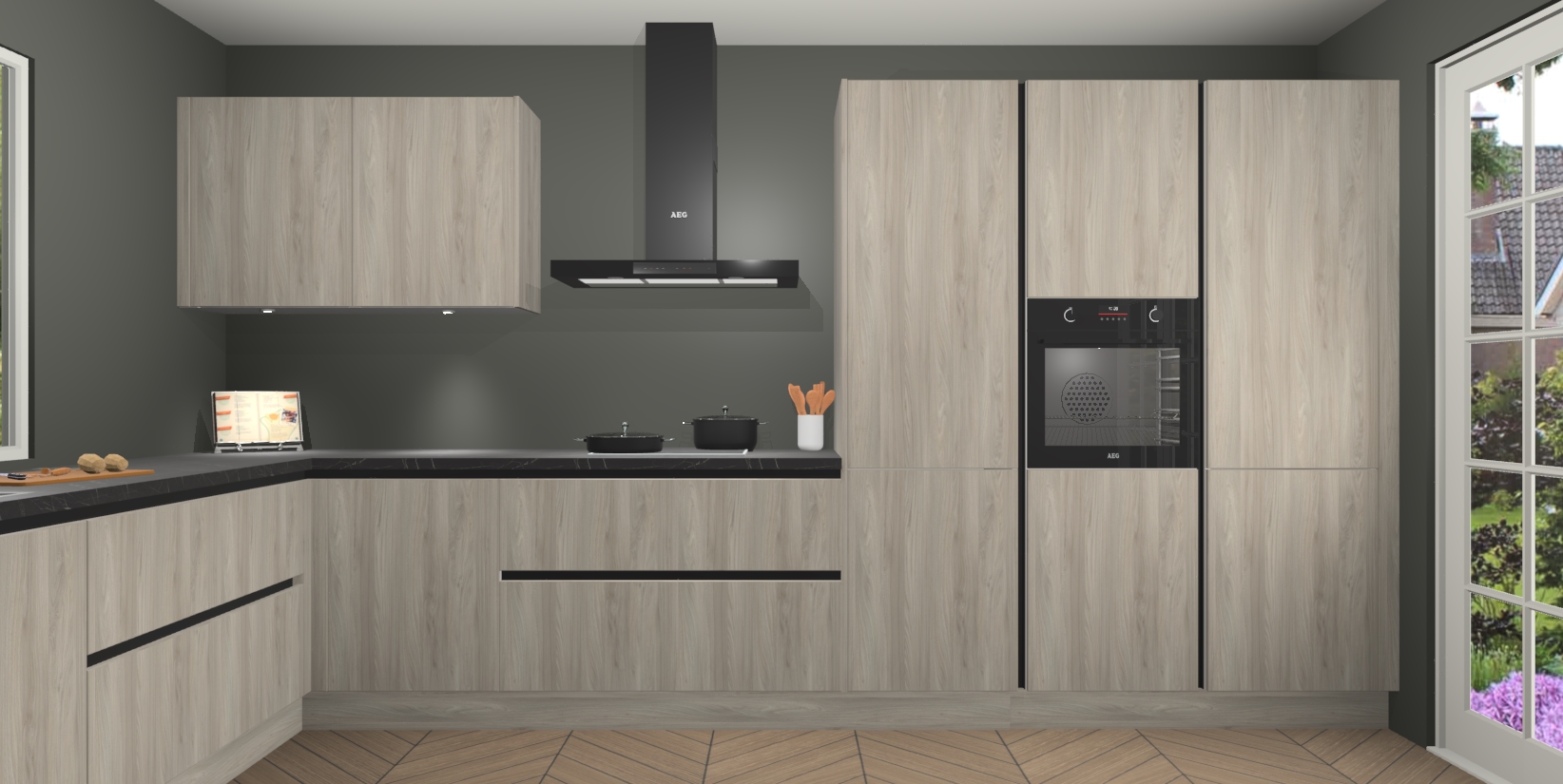 Kom dichtbij de perfecte keuken van uw dromen met de Olm greeploze keuken Debrecen. Met een prachtige houtlook en eigentijds ontwerp, straalt deze keuken warmte en sfeer uit. Of u nu liefhebber bent van traditionele of moderne stijlen, er is genoeg ruimte om aan al uw behoeften te voldoen.