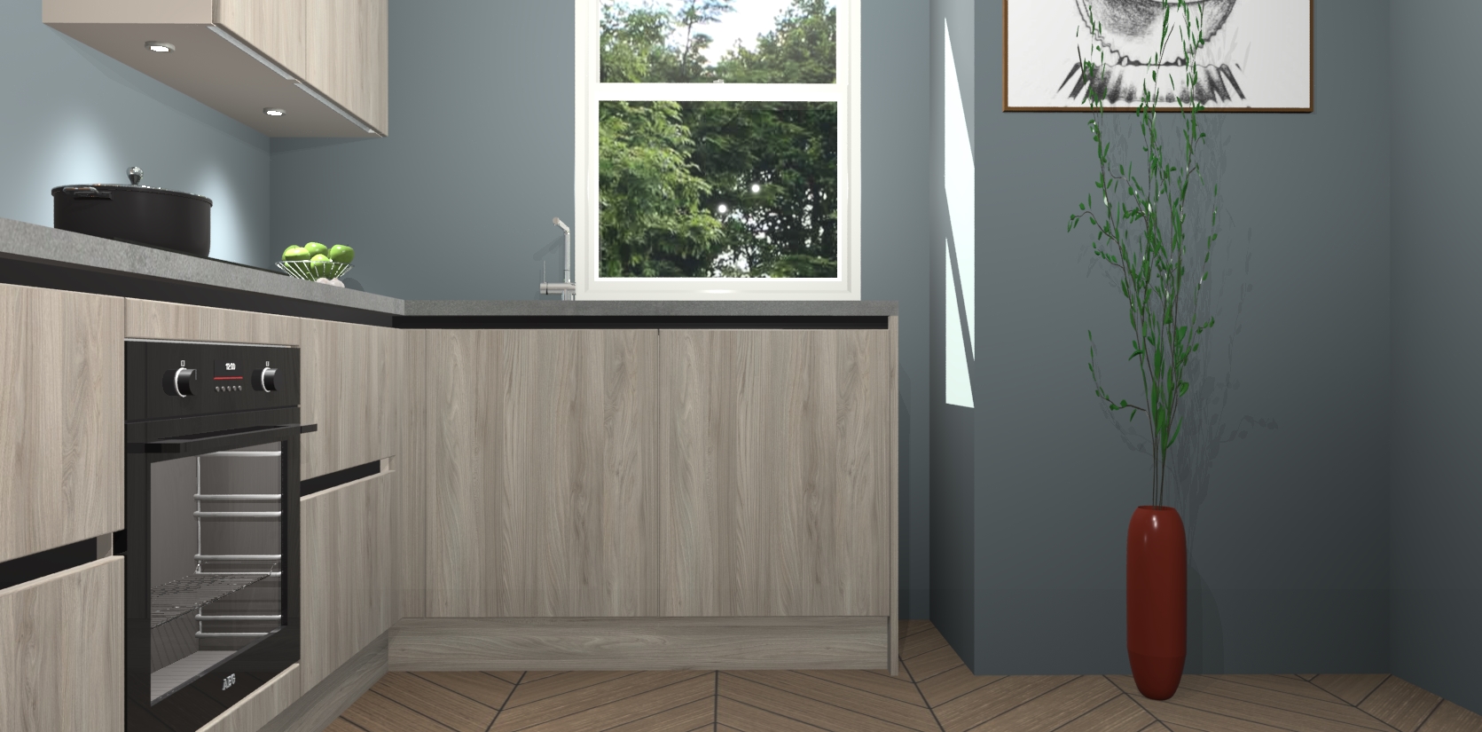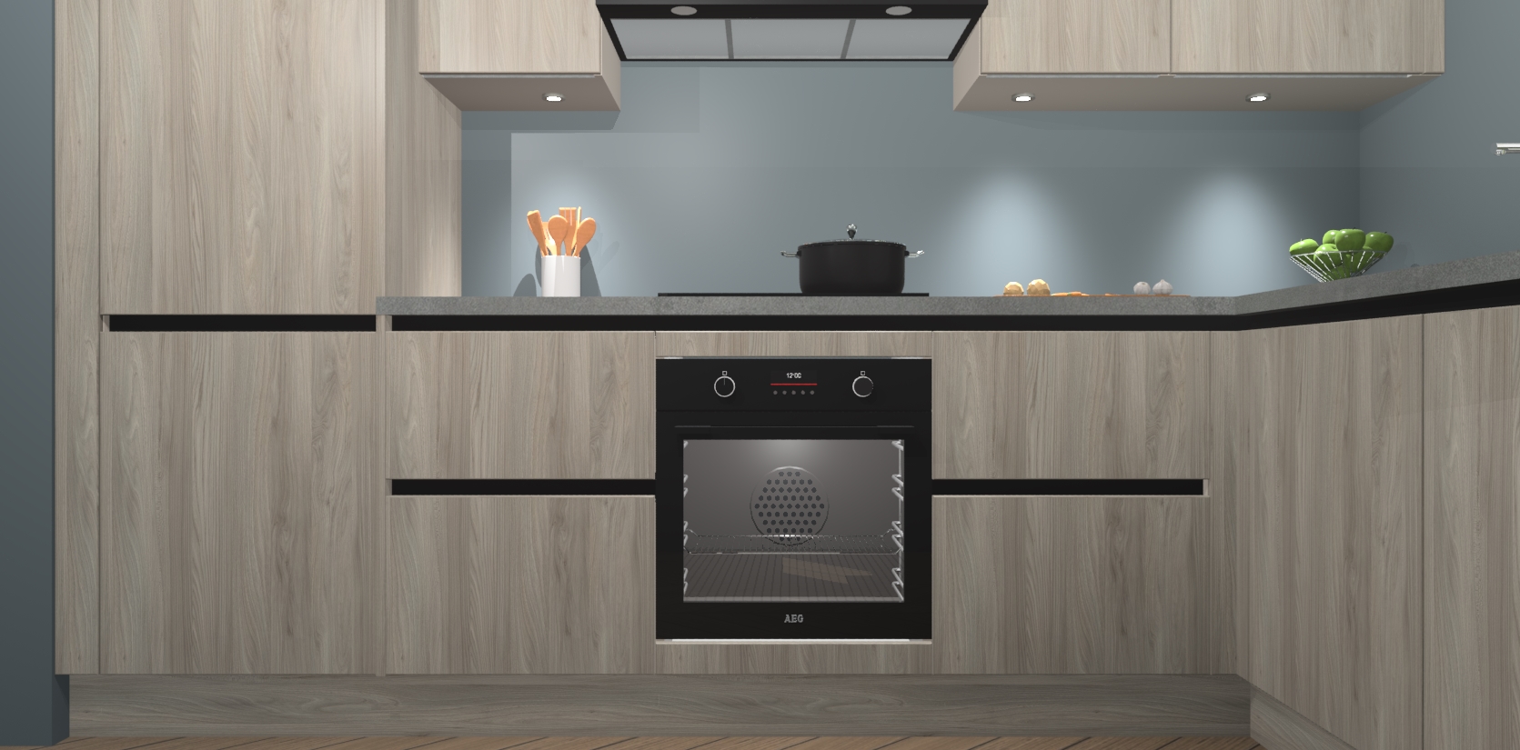 De Olm greeploze keuken Geneve is uitgerust met 5 inbouwapparaten - een oven, inductiekookplaat, afzuigkap, vaatwasser en koelkast - voor al uw kook- en bewaarbehoeftes. U kunt deze apparaten desgewenst eenvoudig upgraden naar AEG of de oven omruilen voor een combimagnetron na het plaatsen van uw bestelling. En met de soft close deuren, voldoende opbergruimte en kasten die voorgemonteerd worden geleverd, bent u in een mum van tijd klaar om heerlijke maaltijden te bereiden!