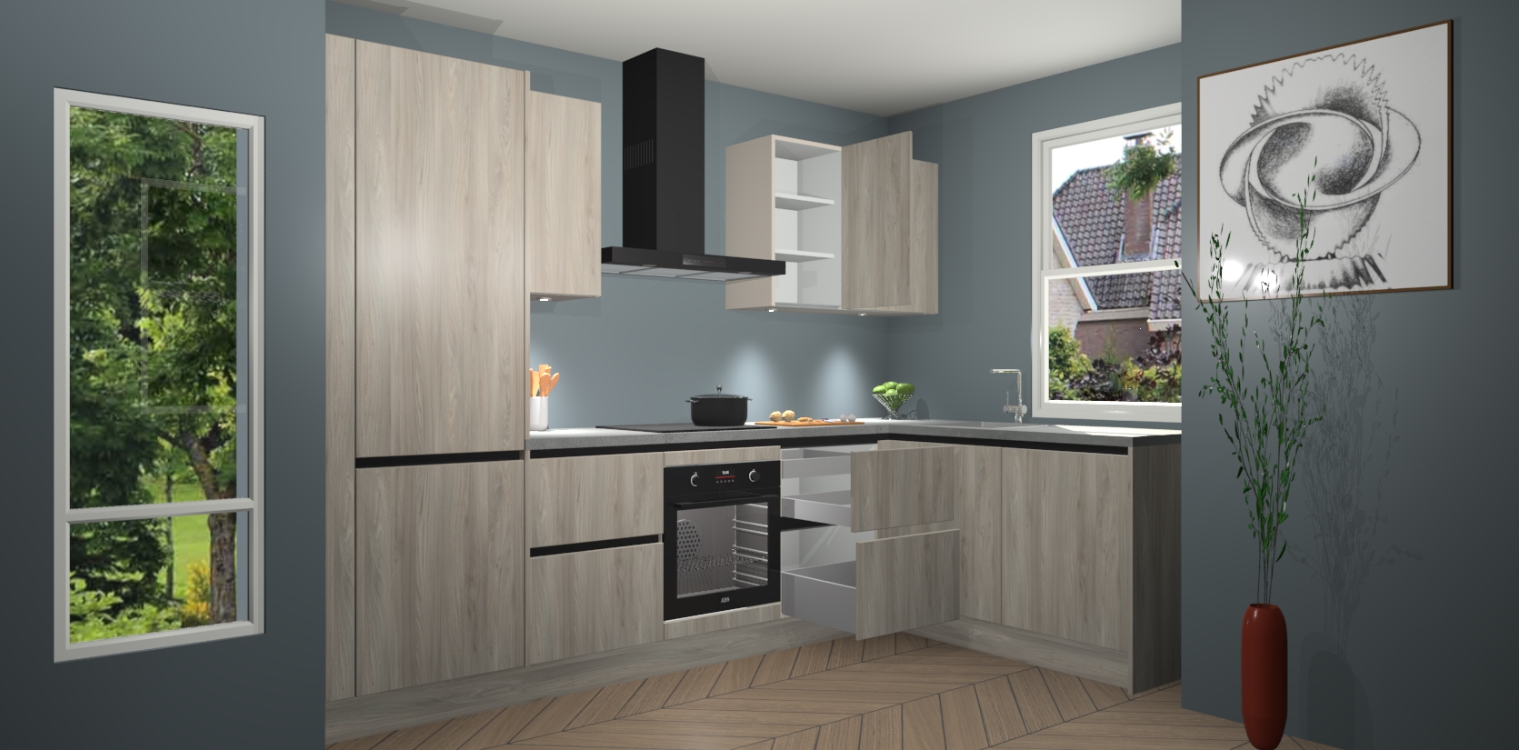 Inclusief plinten, stelpoten en werkblad