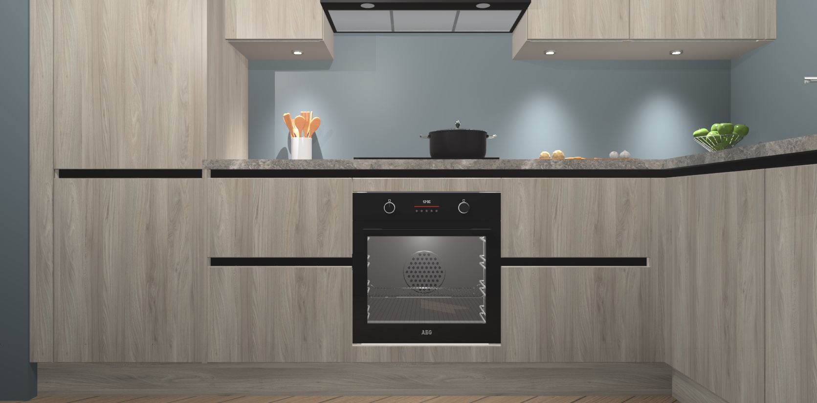 De Olm greeploze keuken Geneve is uitgerust met 5 inbouwapparaten - een oven, inductiekookplaat, afzuigkap, vaatwasser en koelkast - voor al uw kook- en bewaarbehoeftes. U kunt deze apparaten desgewenst eenvoudig upgraden naar AEG of de oven omruilen voor een combimagnetron na het plaatsen van uw bestelling. En met de soft close deuren, voldoende opbergruimte en kasten die voorgemonteerd worden geleverd, bent u in een mum van tijd klaar om heerlijke maaltijden te bereiden!