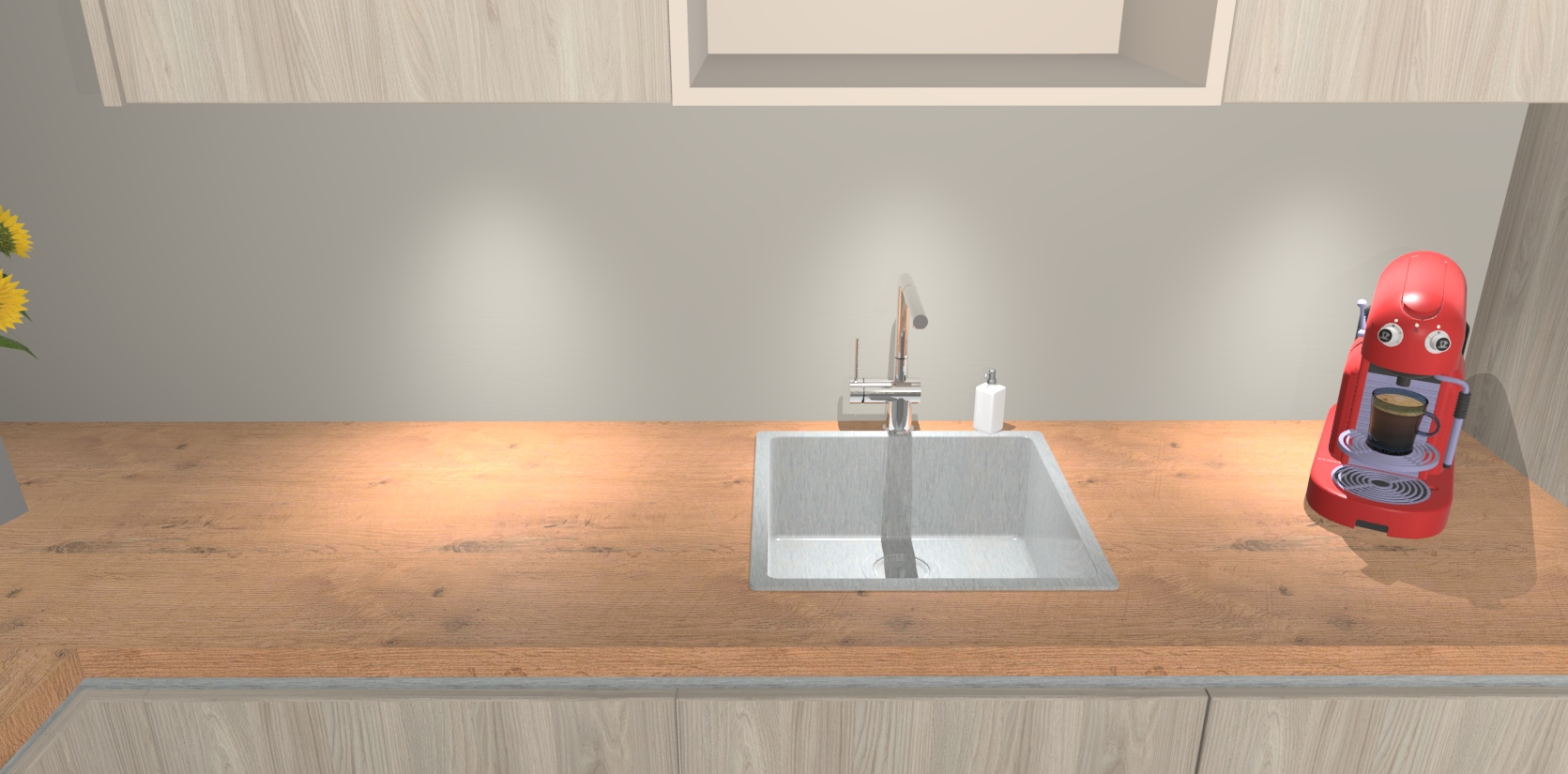 - De spoelbak is nog niet in gevreesd. Dit dient tijdens het werk gedaan te worden