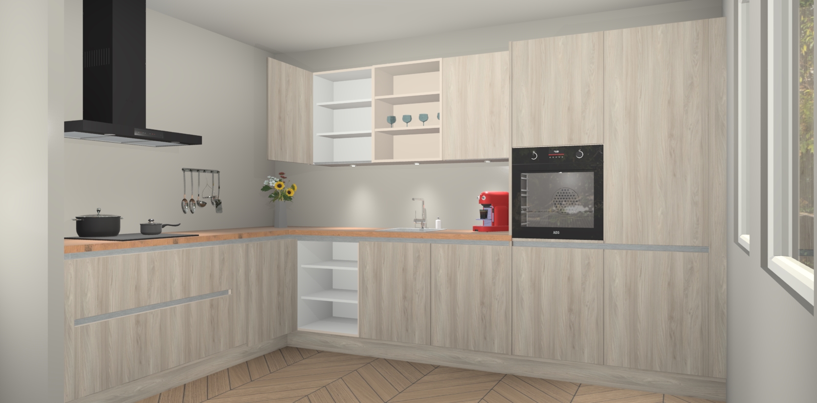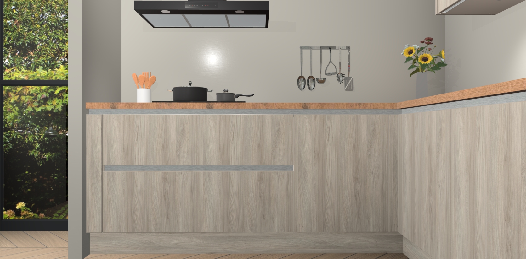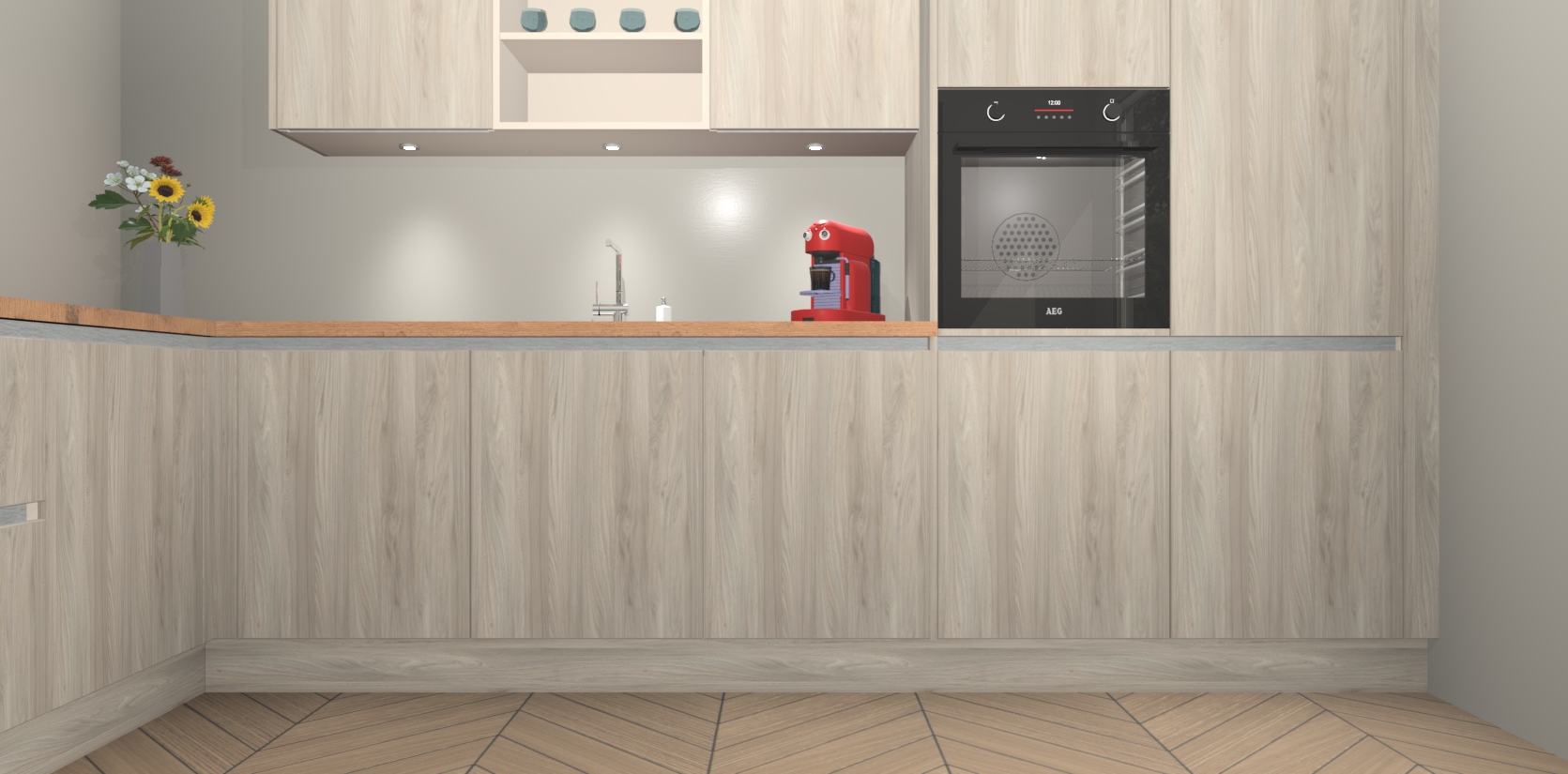 Inclusief plinten, stelpoten en werkblad
