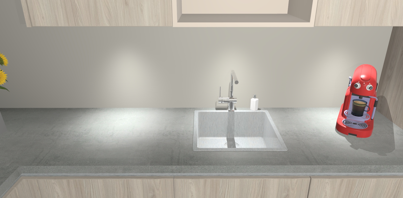 - De spoelbak is nog niet in gevreesd. Dit dient tijdens het werk gedaan te worden