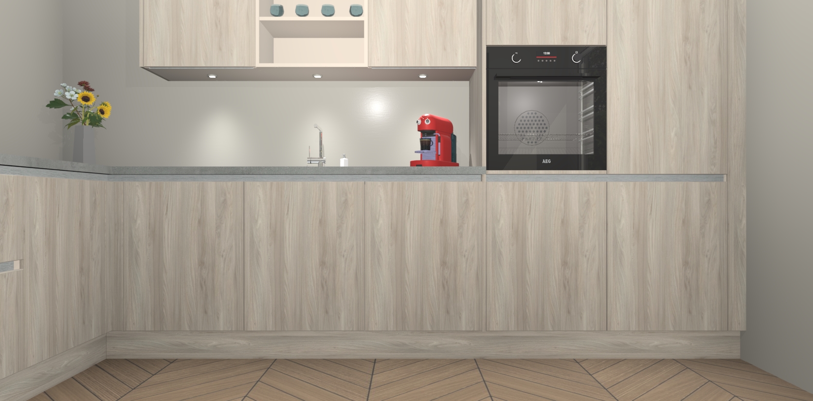 Inclusief plinten, stelpoten en werkblad