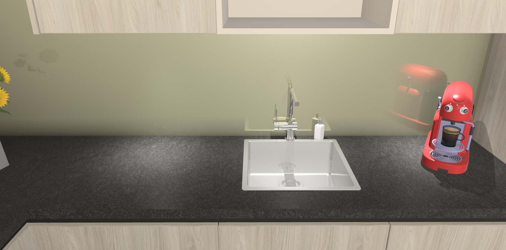 - De spoelbak is nog niet in gevreesd. Dit dient tijdens het werk gedaan te worden