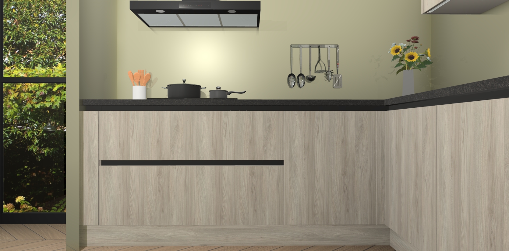 Stelt u zich voor dat u bij thuiskomst wordt begroet door de luxe aanwezigheid van de Olm greeploze keuken Gotenburg, een modern design dat op de eerste plaats staat als het gaat om stijl en functionaliteit! Met hoogwaardige afwerking en elegantie die ongeëvenaard elegant is, brengt deze keuken gezelligheid in uw huis. We zijn er zeker van dat u verrast zult zijn door alle extravagantie die deze keuken te bieden heeft.
