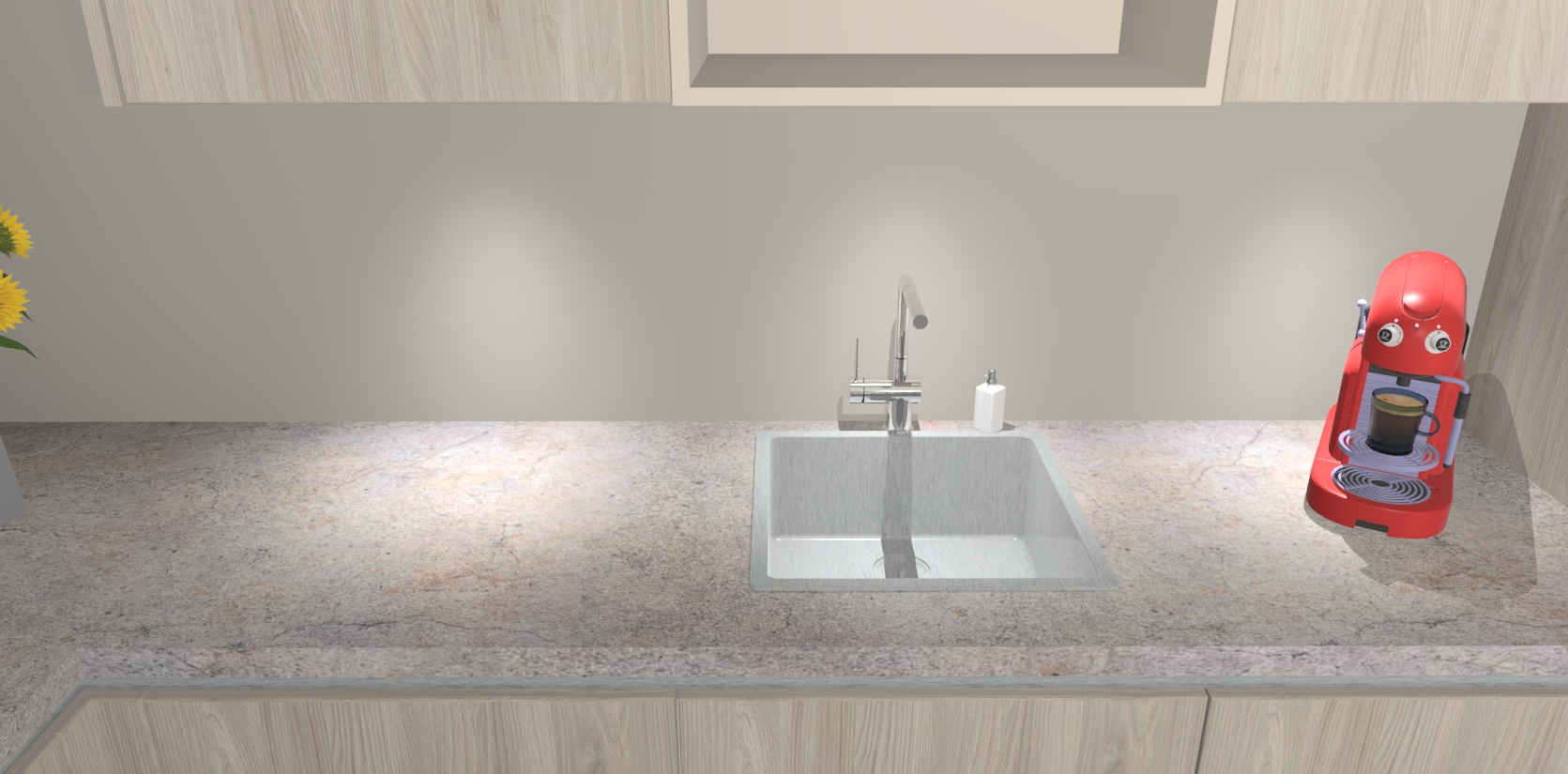 - De spoelbak is nog niet in gevreesd. Dit dient tijdens het werk gedaan te worden