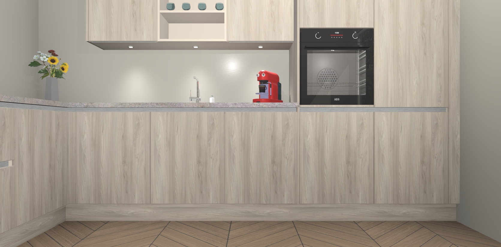 Inclusief plinten, stelpoten en werkblad
