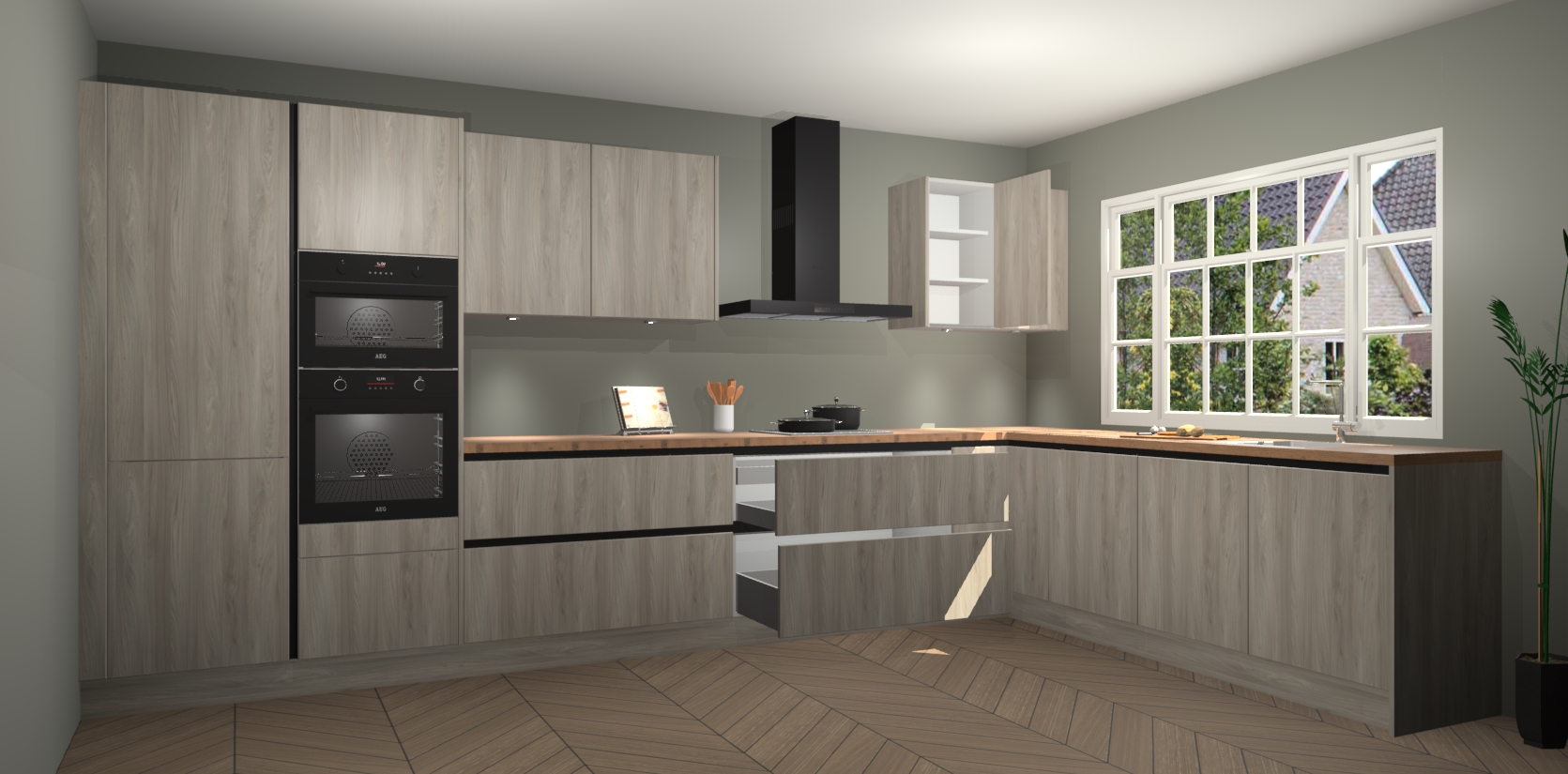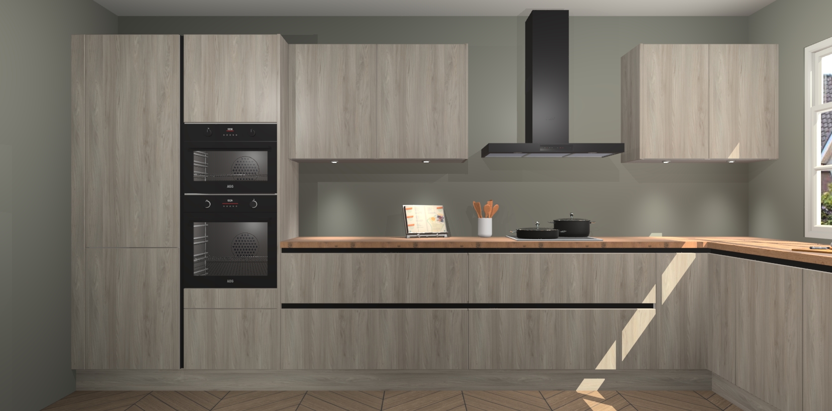 Kom dichtbij de perfecte keuken van uw dromen met de olm greeploze keuken Graz. Met een prachtige houtlook en eigentijds ontwerp, straalt deze keuken warmte en sfeer uit. Of u nu liefhebber bent van traditionele of moderne stijlen, er is genoeg ruimte om aan al uw behoeften te voldoen.
