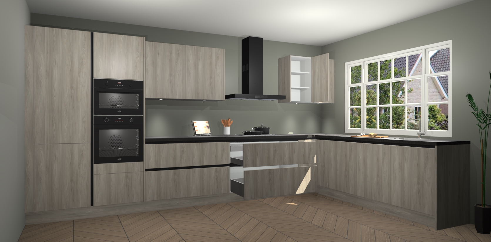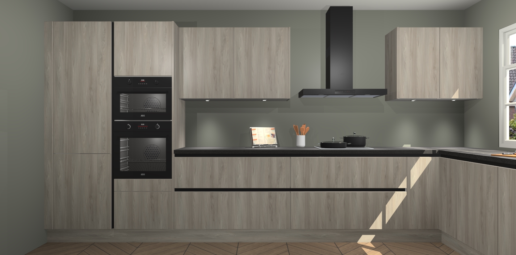 Kom dichtbij de perfecte keuken van uw dromen met de olm greeploze keuken Graz. Met een prachtige houtlook en eigentijds ontwerp, straalt deze keuken warmte en sfeer uit. Of u nu liefhebber bent van traditionele of moderne stijlen, er is genoeg ruimte om aan al uw behoeften te voldoen.