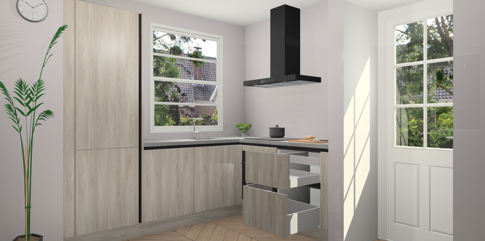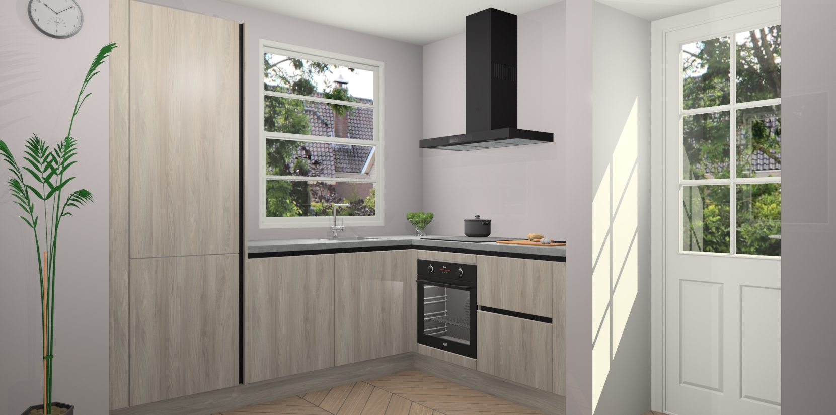 Wilt u een echte aanwinst voor uw keuken, maar bent u op zoek naar iets specialers dan de standaardkeukens? Kies dan voor de Olm greeploze keuken Harbin! Dit prachtige hoekkeukenontwerp geeft u alle ruimte om optimaal te genieten van heerlijk koken. Het uitmuntende afwerkingsniveau, de fraaie houtstructuur en de sfeervolle zwarte grepen maken van de Olm greeploze keuken Harbin de perfecte keuze voor zowel enthousiaste thuiskoks als design-minded interieurliefhebbers.