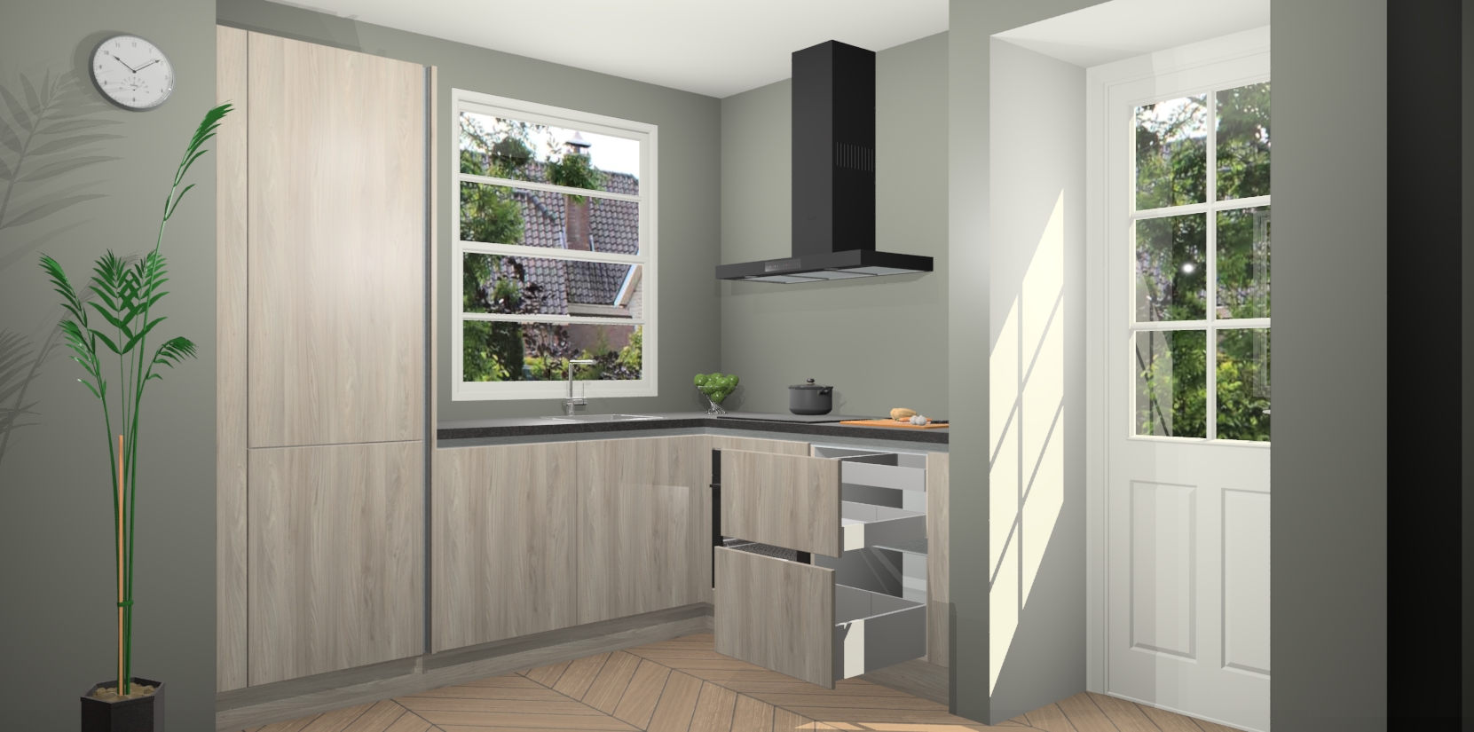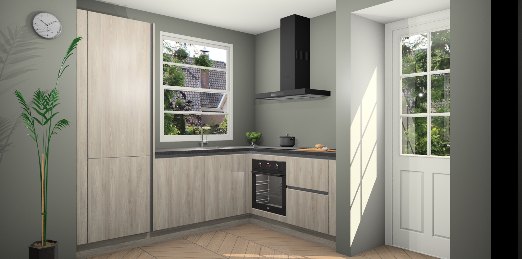 Wilt u een echte aanwinst voor uw keuken, maar bent u op zoek naar iets specialers dan de standaardkeukens? Kies dan voor de Olm greeploze keuken Harbin! Dit prachtige hoekkeukenontwerp geeft u alle ruimte om optimaal te genieten van heerlijk koken. Het uitmuntende afwerkingsniveau, de fraaie houtstructuur en de sfeervolle zwarte grepen maken van de Olm greeploze keuken Harbin de perfecte keuze voor zowel enthousiaste thuiskoks als design-minded interieurliefhebbers.