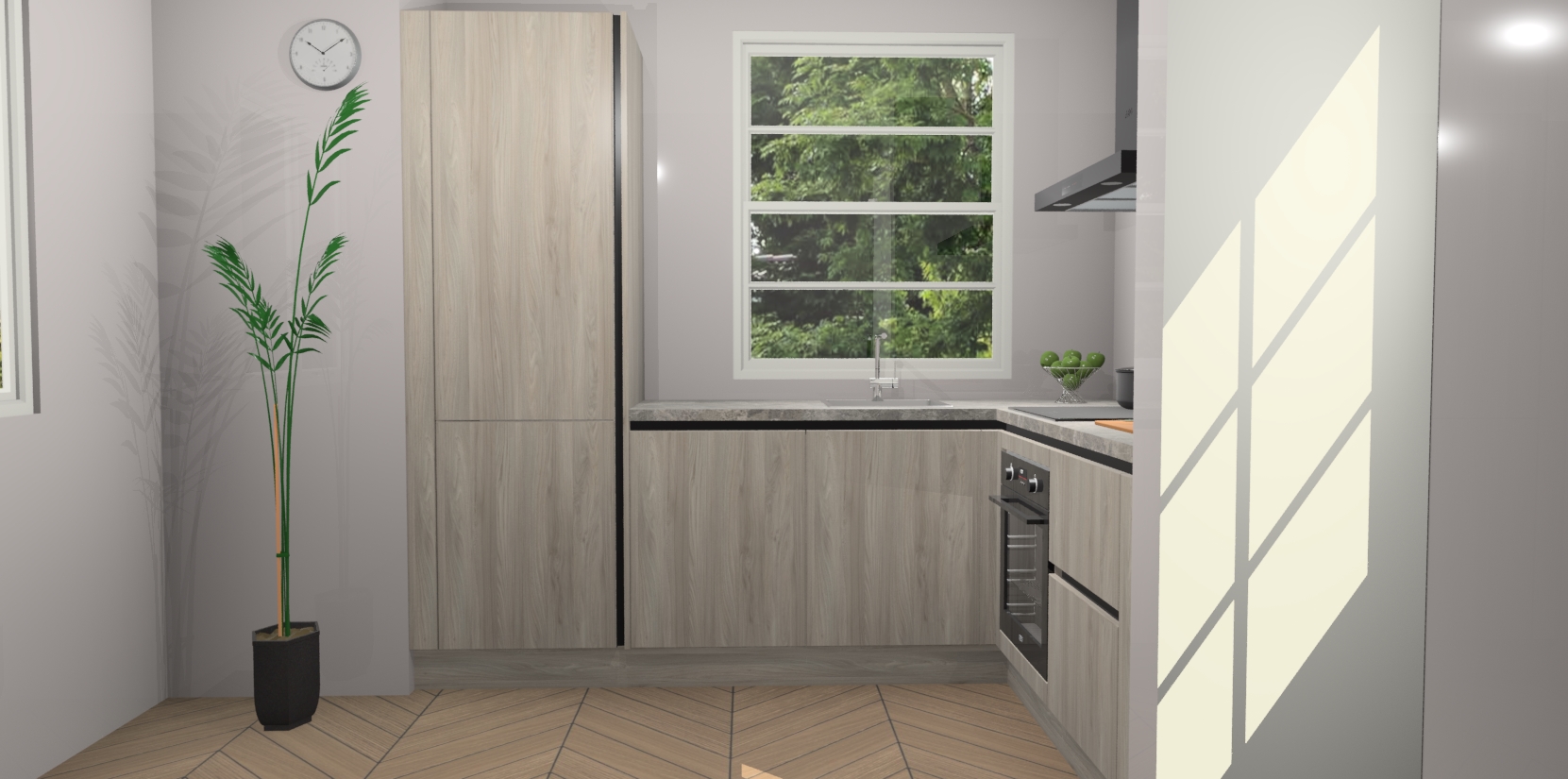 Wilt u een echte aanwinst voor uw keuken, maar bent u op zoek naar iets specialers dan de standaardkeukens? Kies dan voor de Olm greeploze keuken Harbin! Dit prachtige hoekkeukenontwerp geeft u alle ruimte om optimaal te genieten van heerlijk koken. Het uitmuntende afwerkingsniveau, de fraaie houtstructuur en de sfeervolle zwarte grepen maken van de Olm greeploze keuken Harbin de perfecte keuze voor zowel enthousiaste thuiskoks als design-minded interieurliefhebbers.