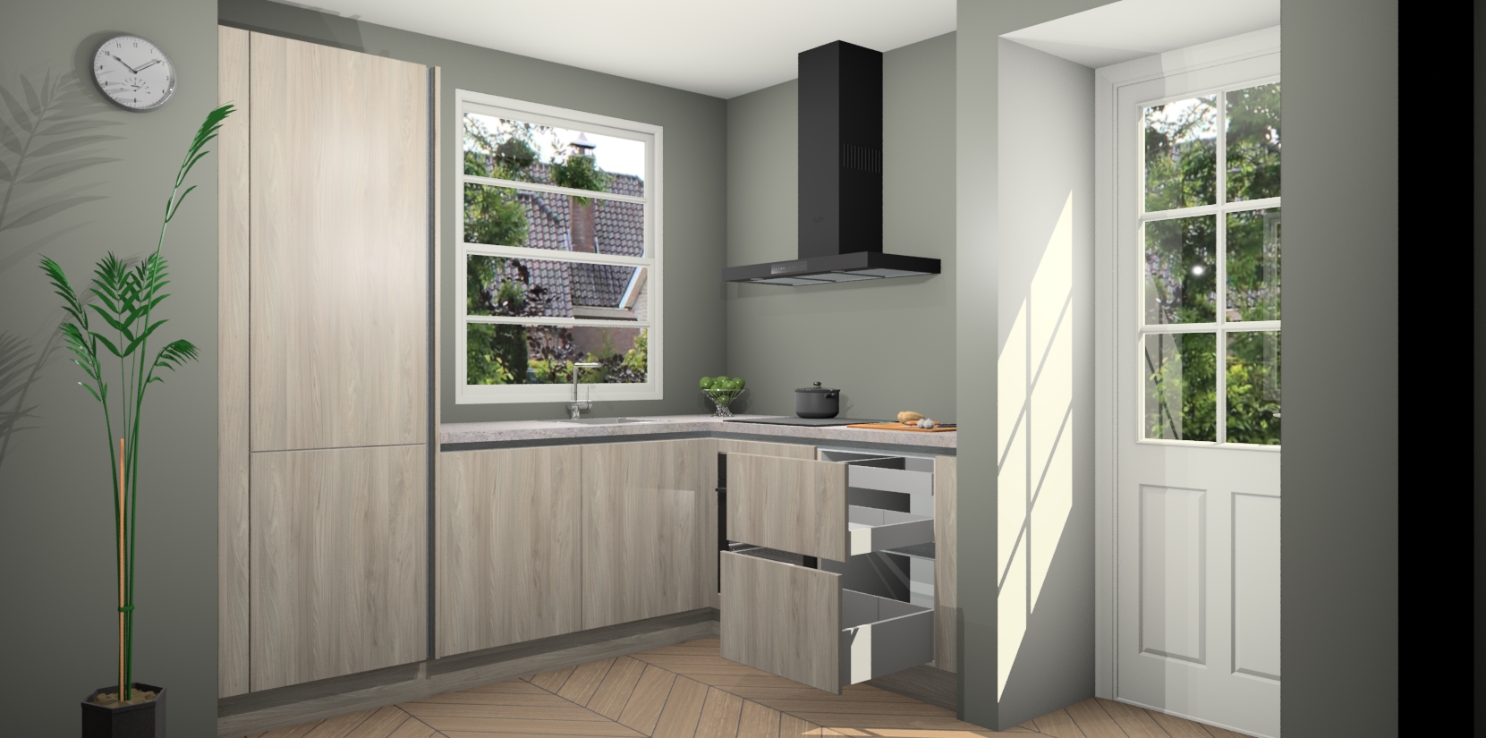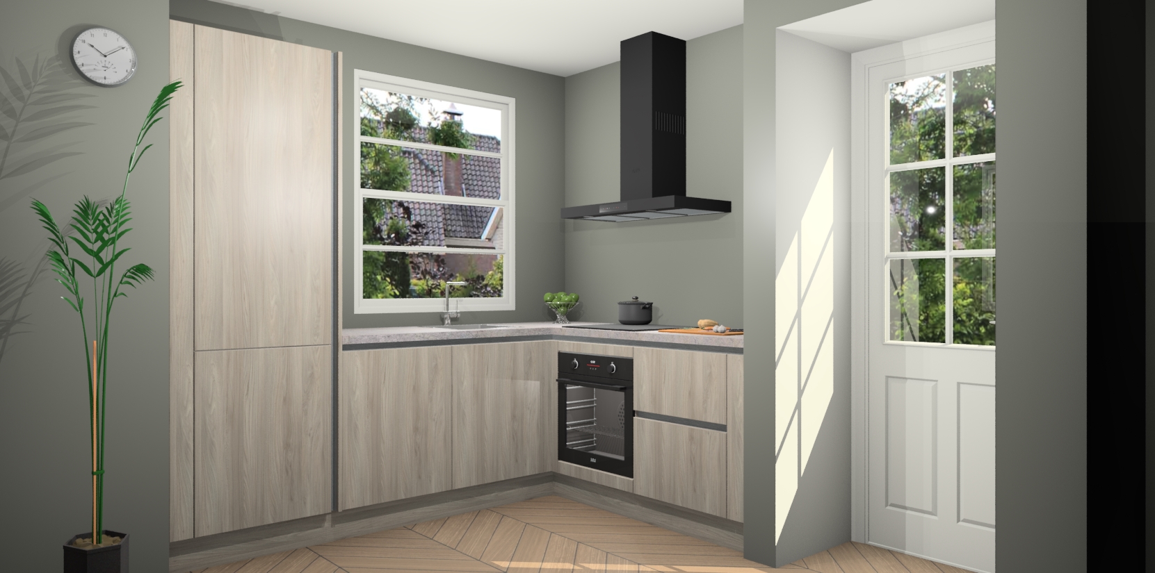 Wilt u een echte aanwinst voor uw keuken, maar bent u op zoek naar iets specialers dan de standaardkeukens? Kies dan voor de Olm greeploze keuken Harbin! Dit prachtige hoekkeukenontwerp geeft u alle ruimte om optimaal te genieten van heerlijk koken. Het uitmuntende afwerkingsniveau, de fraaie houtstructuur en de sfeervolle zwarte grepen maken van de Olm greeploze keuken Harbin de perfecte keuze voor zowel enthousiaste thuiskoks als design-minded interieurliefhebbers.