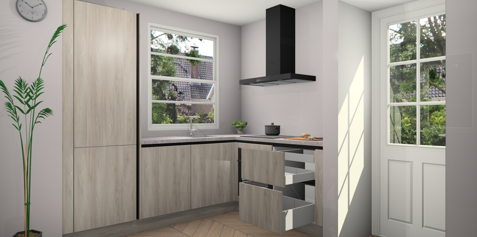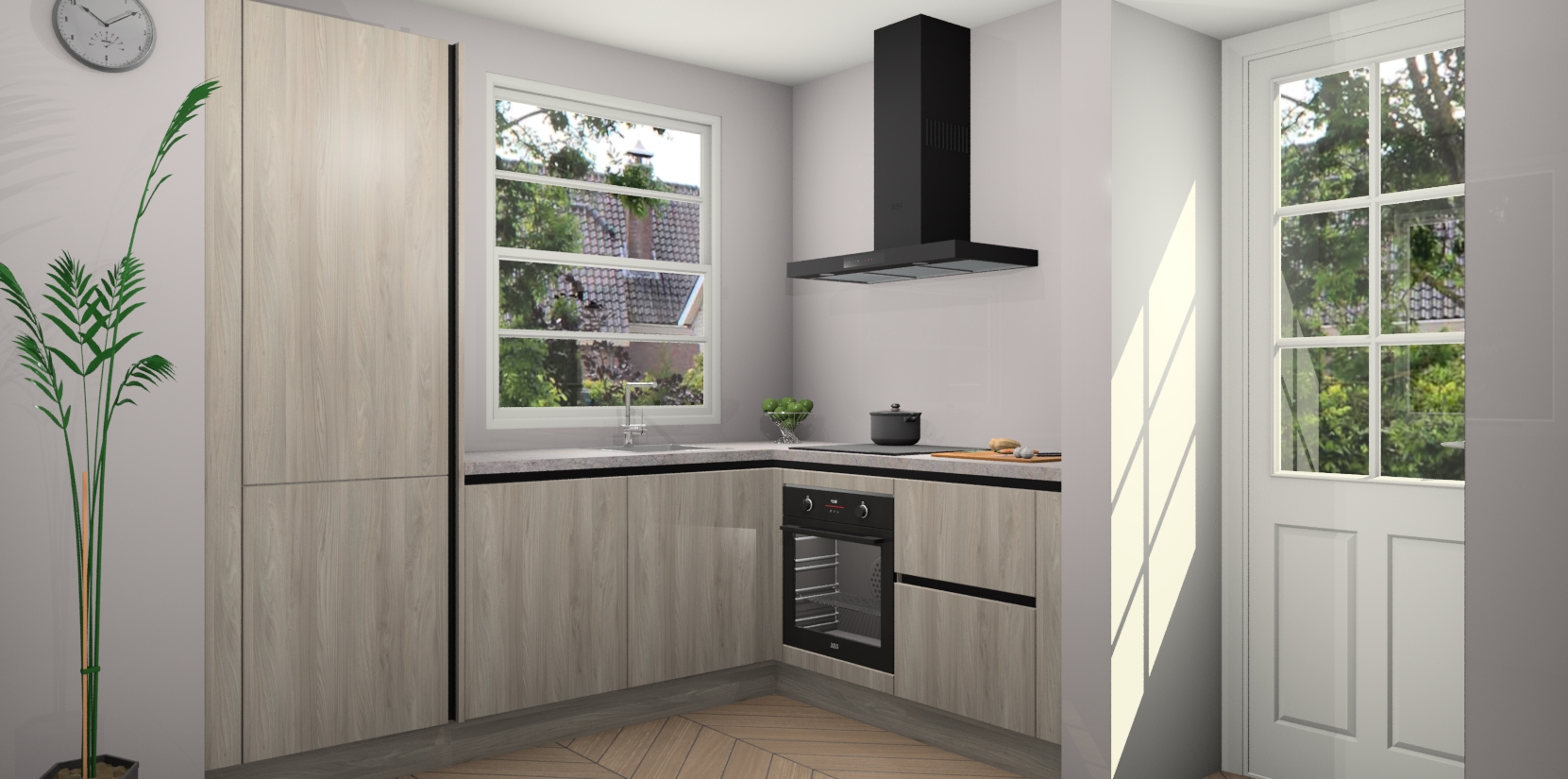 Wilt u een echte aanwinst voor uw keuken, maar bent u op zoek naar iets specialers dan de standaardkeukens? Kies dan voor de Olm greeploze keuken Harbin! Dit prachtige hoekkeukenontwerp geeft u alle ruimte om optimaal te genieten van heerlijk koken. Het uitmuntende afwerkingsniveau, de fraaie houtstructuur en de sfeervolle zwarte grepen maken van de Olm greeploze keuken Harbin de perfecte keuze voor zowel enthousiaste thuiskoks als design-minded interieurliefhebbers.