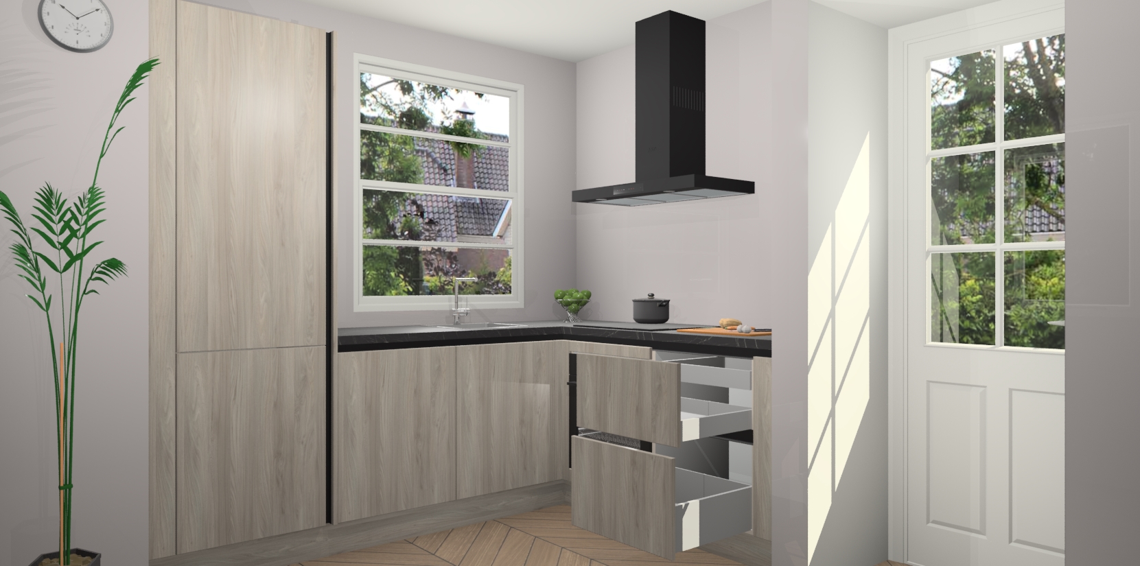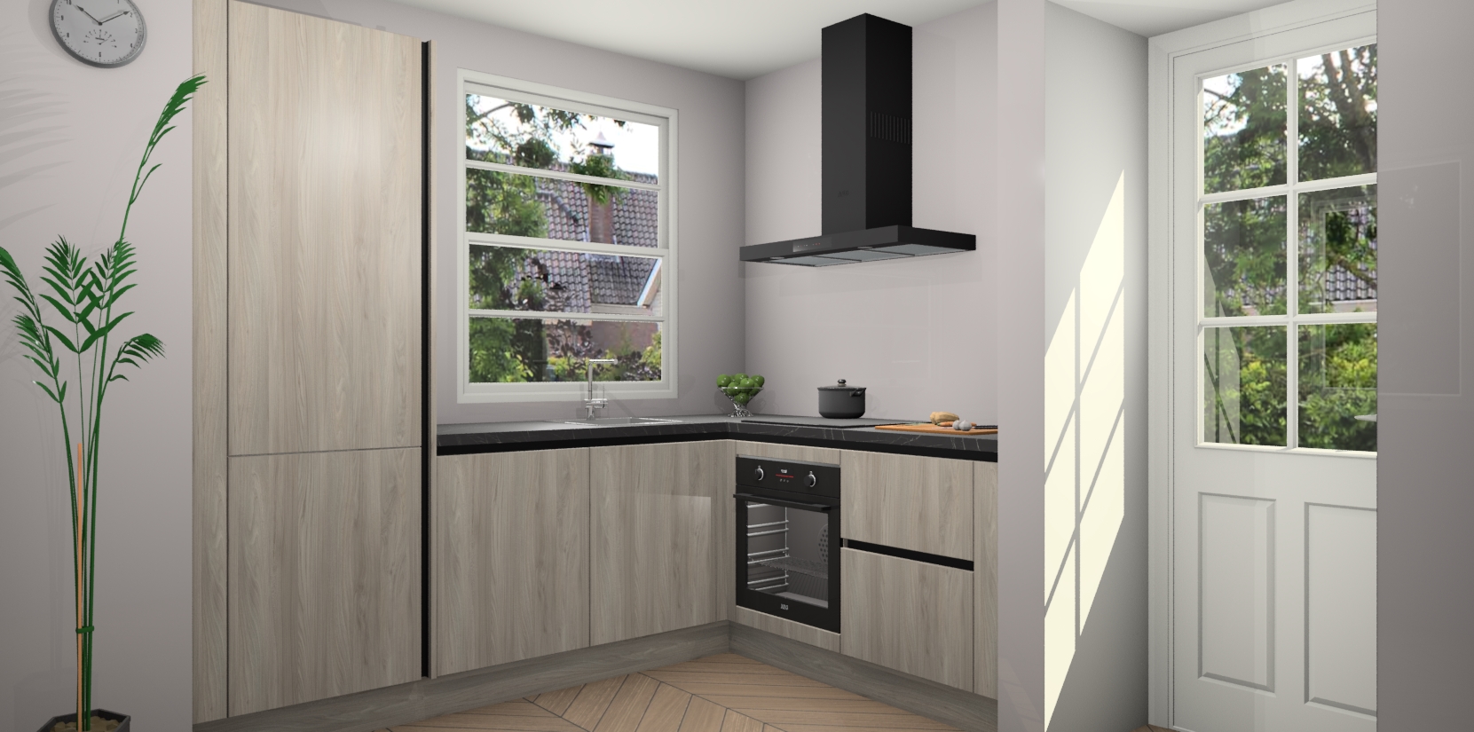 Wilt u een echte aanwinst voor uw keuken, maar bent u op zoek naar iets specialers dan de standaardkeukens? Kies dan voor de Olm greeploze keuken Harbin! Dit prachtige hoekkeukenontwerp geeft u alle ruimte om optimaal te genieten van heerlijk koken. Het uitmuntende afwerkingsniveau, de fraaie houtstructuur en de sfeervolle zwarte grepen maken van de Olm greeploze keuken Harbin de perfecte keuze voor zowel enthousiaste thuiskoks als design-minded interieurliefhebbers.