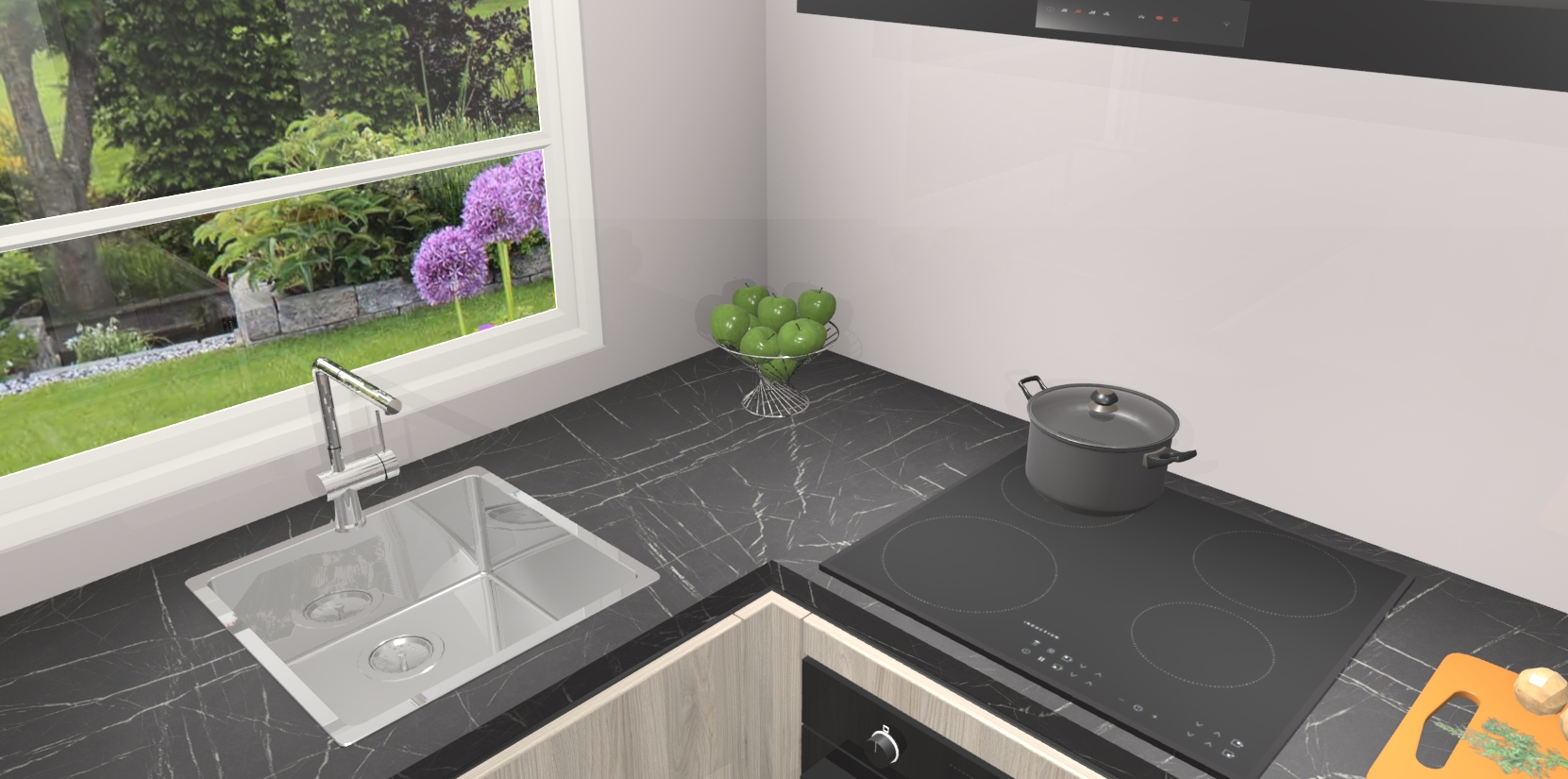 - Bij een hoekwerkblad zijn de hoeken in gevreesd en op maat gemaakt