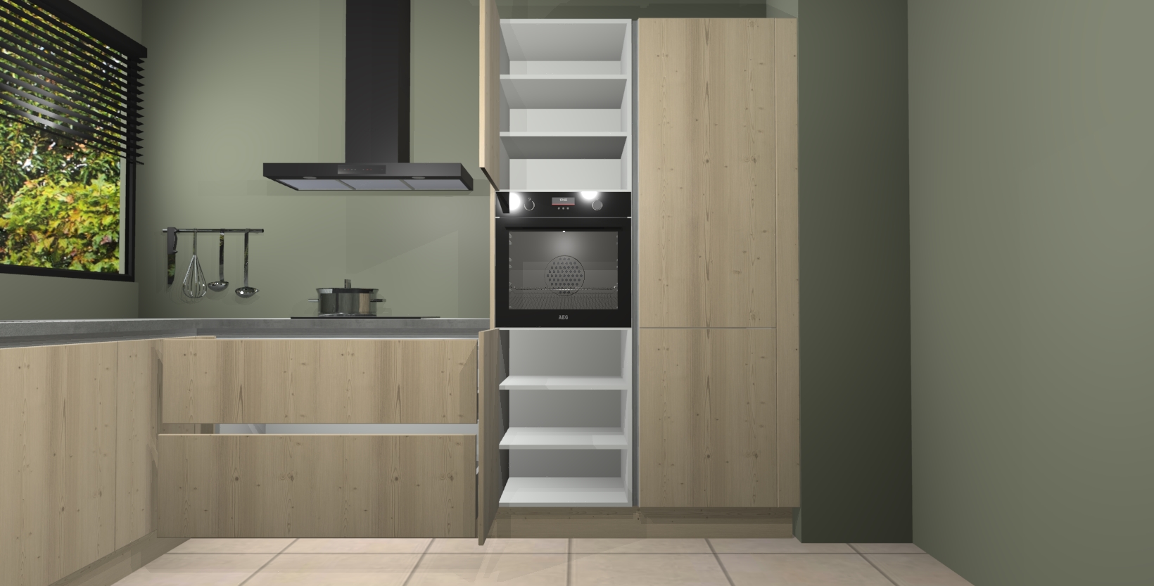 Met een modern, tijdloos design en ruime opslagruimte, zult u zich in no-time thuis voelen in uw nieuwe keuken. Uw leven wordt eenvoudiger met de soft-close deuren die voor het ultieme stille comfort zorgen - geen geluid dat u stoort terwijl u kookt. Ook is de keuken voorzien van 5 ingebouwde apparaten: een oven, inductie kookplaat, afzuigkap, vaatwasser en koelkast. Deze kunnen gemakkelijk na bestelling worden bijgewerkt naar AEG - waardoor uw luxe ervaring compleet is.