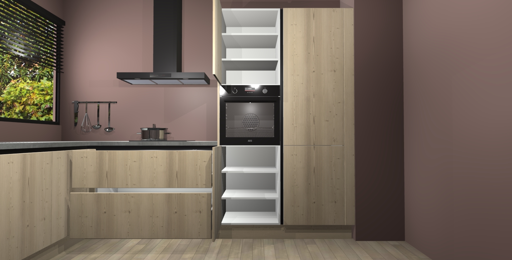 Met een modern, tijdloos design en ruime opslagruimte, zult u zich in no-time thuis voelen in uw nieuwe keuken. Uw leven wordt eenvoudiger met de soft-close deuren die voor het ultieme stille comfort zorgen - geen geluid dat u stoort terwijl u kookt. Ook is de keuken voorzien van 5 ingebouwde apparaten: een oven, inductie kookplaat, afzuigkap, vaatwasser en koelkast. Deze kunnen gemakkelijk na bestelling worden bijgewerkt naar AEG - waardoor uw luxe ervaring compleet is.