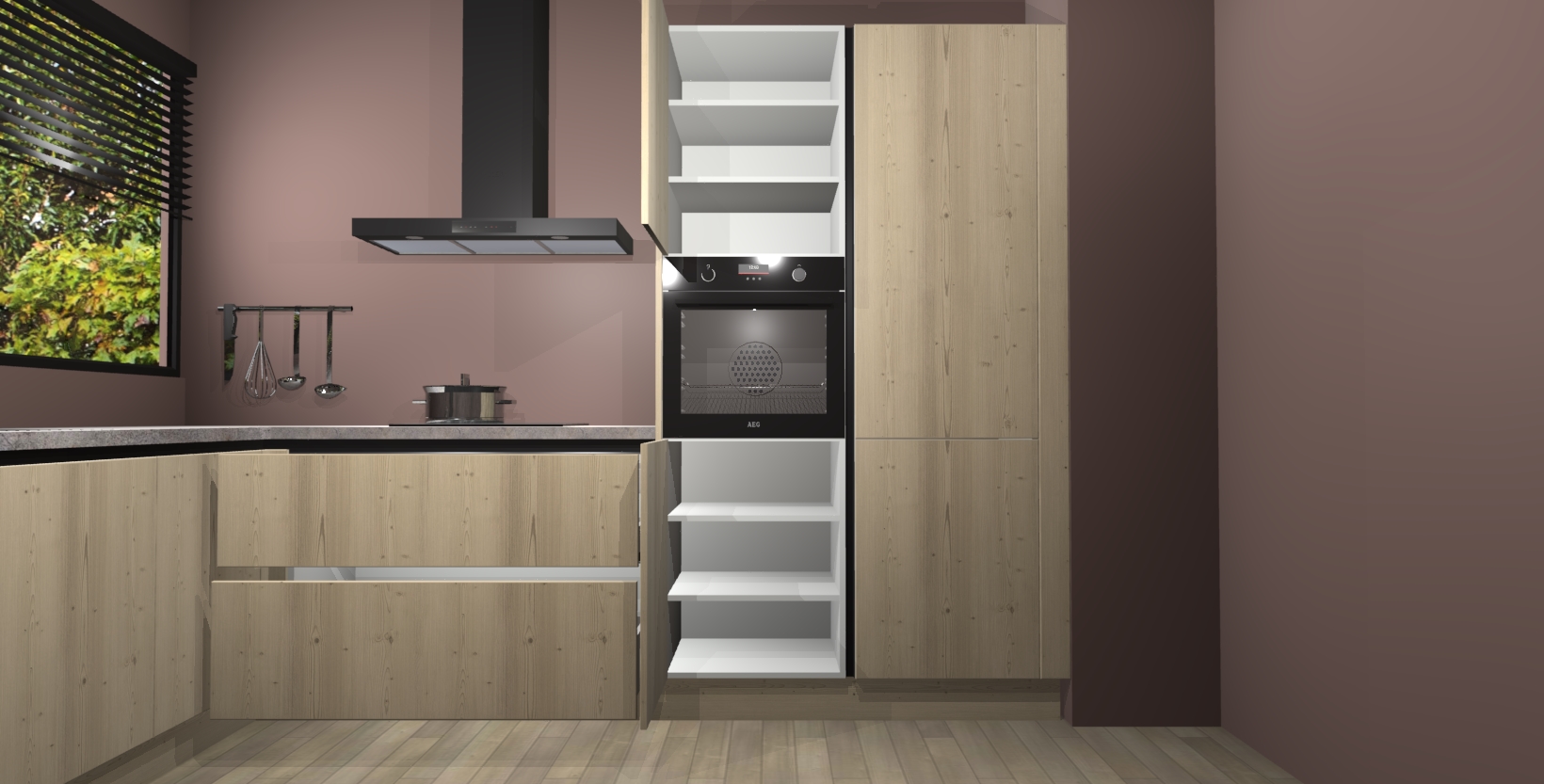 Met een modern, tijdloos design en ruime opslagruimte, zult u zich in no-time thuis voelen in uw nieuwe keuken. Uw leven wordt eenvoudiger met de soft-close deuren die voor het ultieme stille comfort zorgen - geen geluid dat u stoort terwijl u kookt. Ook is de keuken voorzien van 5 ingebouwde apparaten: een oven, inductie kookplaat, afzuigkap, vaatwasser en koelkast. Deze kunnen gemakkelijk na bestelling worden bijgewerkt naar AEG - waardoor uw luxe ervaring compleet is.