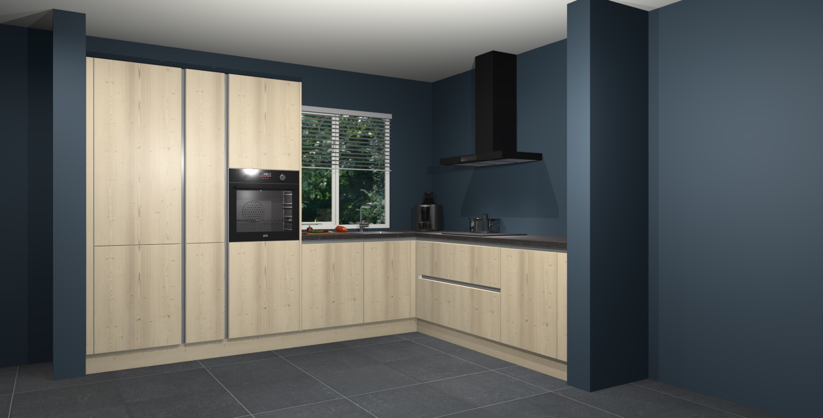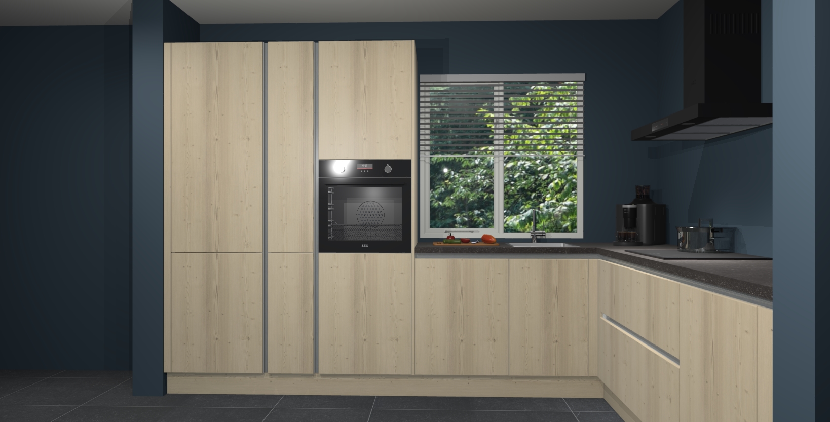 Met een modern, tijdloos design en ruime opslagruimte, zult u zich in no-time thuis voelen in uw nieuwe keuken. Uw leven wordt eenvoudiger met de soft-close deuren die voor het ultieme stille comfort zorgen - geen geluid dat u stoort terwijl u kookt. Ook is de keuken voorzien van 5 ingebouwde apparaten: een oven, inductie kookplaat, afzuigkap, vaatwasser en koelkast. Deze kunnen gemakkelijk na bestelling worden bijgewerkt naar AEG - waardoor uw luxe ervaring compleet is.